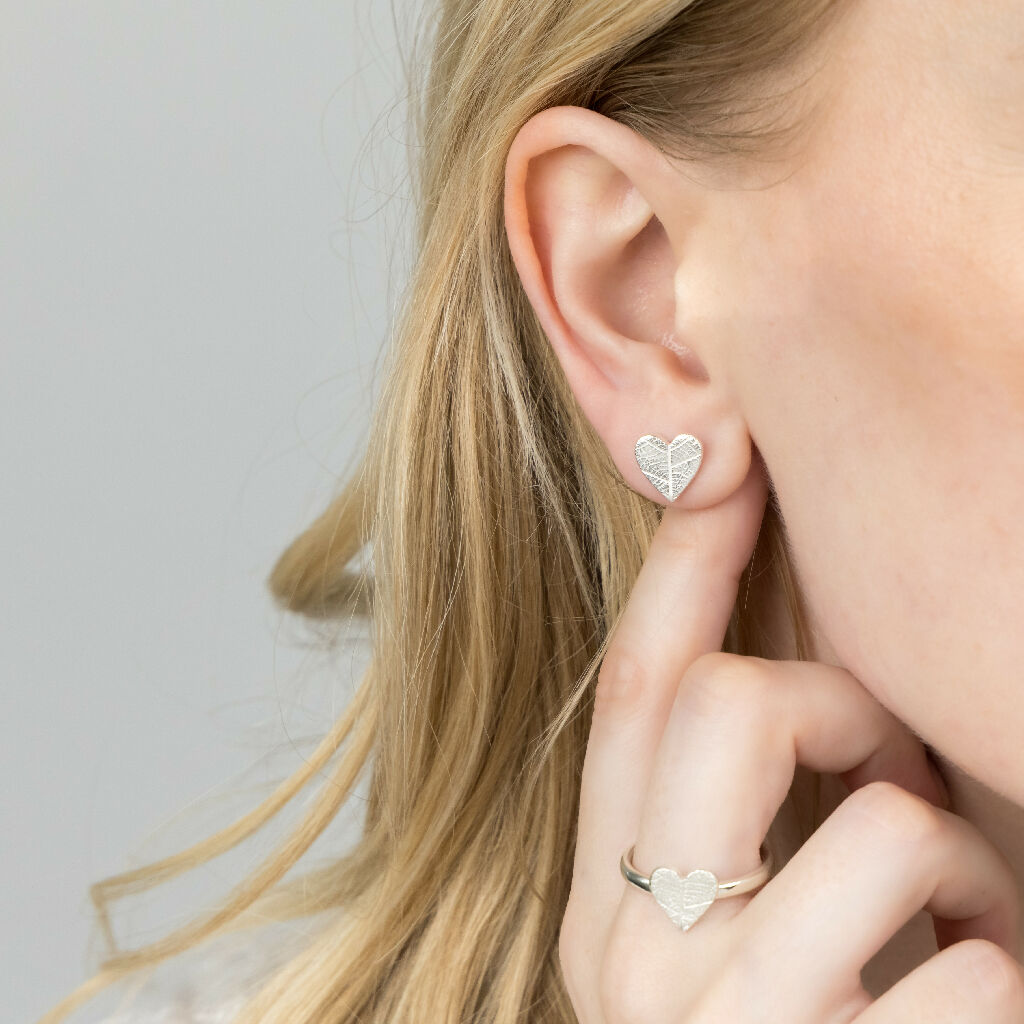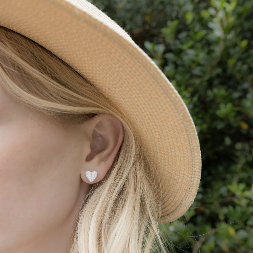 From our Heart Leaf Print jewellery collection, a beautiful organic texture is achieved by imprinting a leaf skeleton on to the silver. Simple, elegant and suitable for everyday wear.