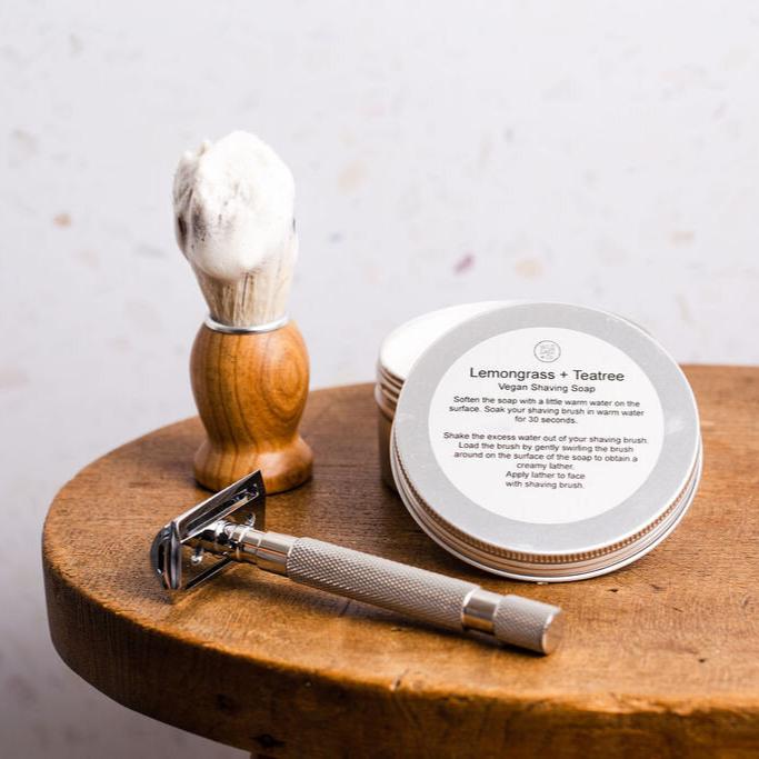 Elevate your shave ritual with this beautifully crafted, plastic-free soap—infused with deeply nourishing butters, gentle cleansers, and calming essential oils to create a luxurious, skin-loving lather. Handmade using cold-processed oils and butters, this shaving soap swaps aerosol cans for a tin and invites a simpler, cleaner routine.