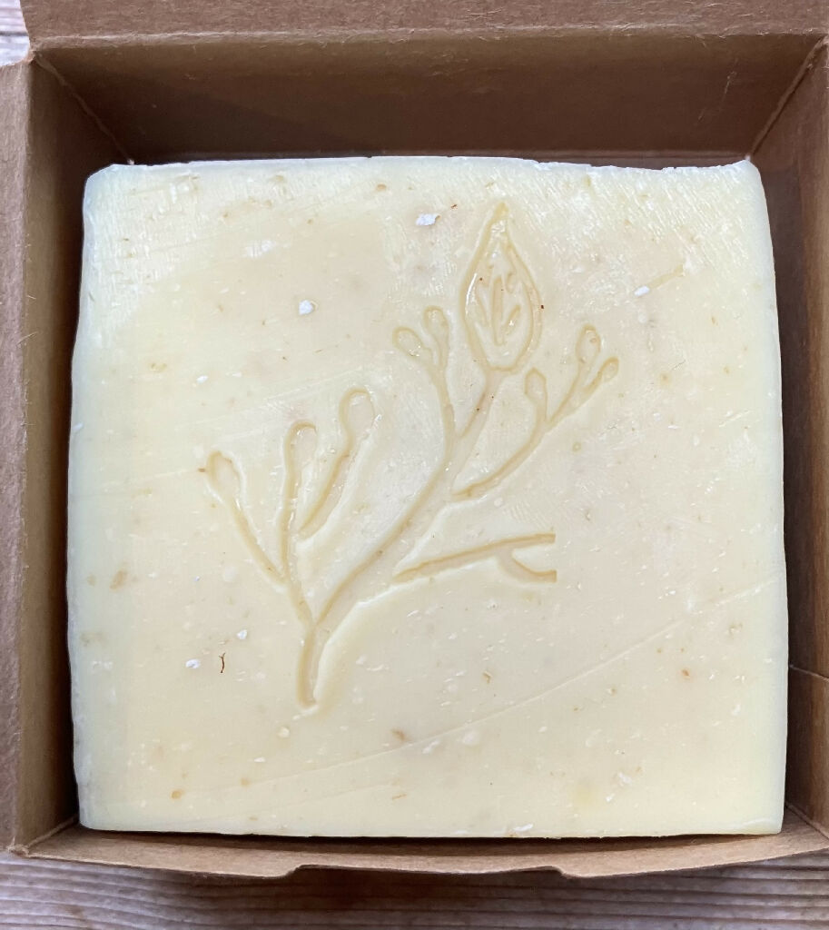Gentle cold process soap with organic oats and calendula. Unperfumed. designed to be kind to sensitive skin. Suitable for babies and children.