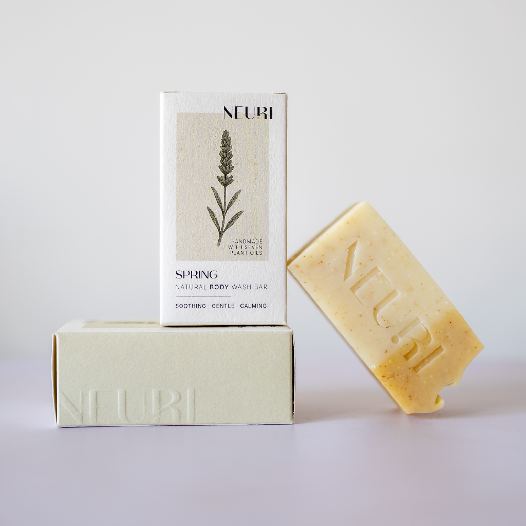 Handcrafted with seven nourishing plant butters and oils, Spring is enriched with Colloidal Oatmeal and Turmeric to soothe, soften, and deeply hydrate sensitive skin. The gentle blend of Lavender, Chamomile, and Frankincense quiets the mind and nurtures the body — a breath of calm for busy days and restful nights.