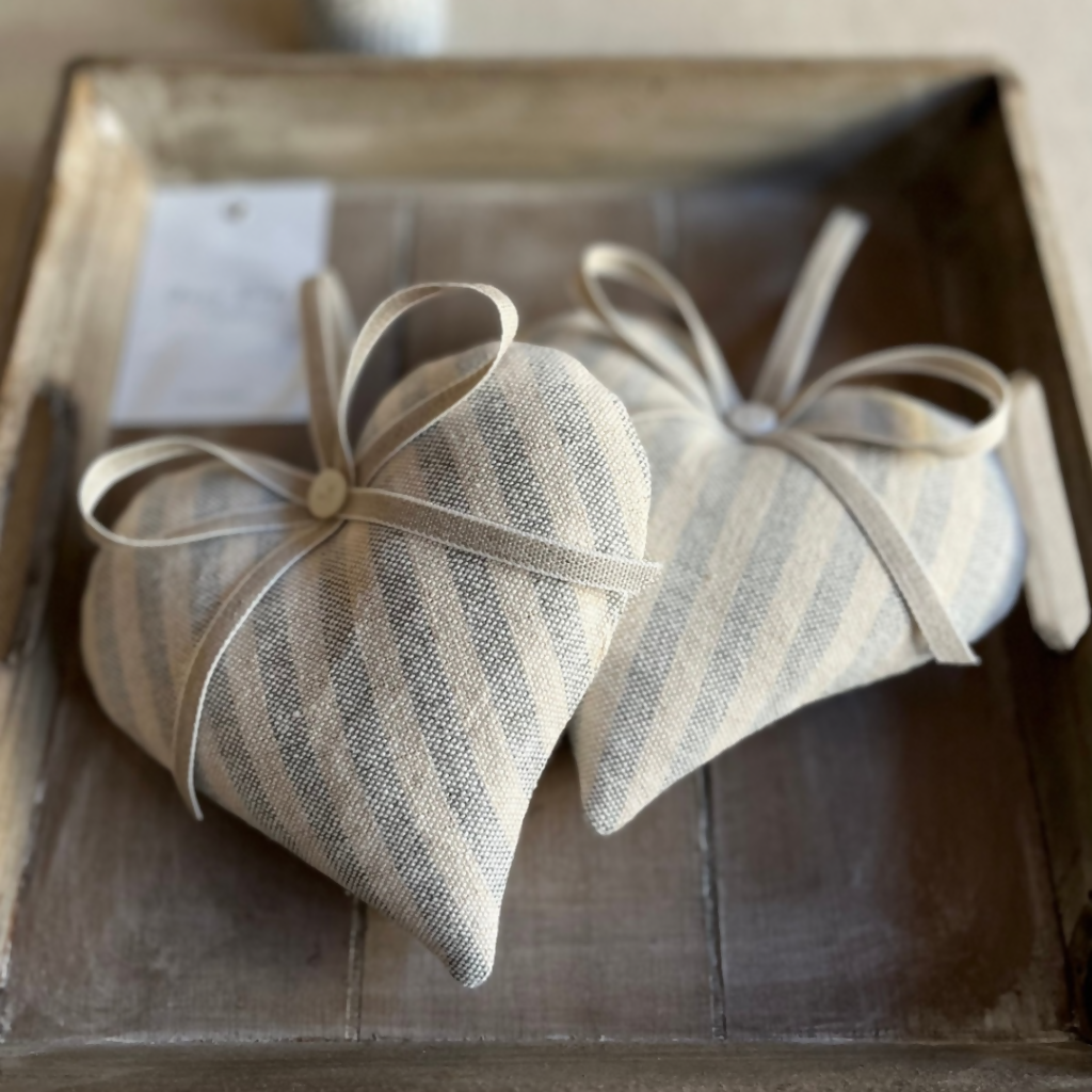 A highly fragrant Lavender heart in beautiful Sail Blue Natural Stripe cotton by Susie Watson Designs.