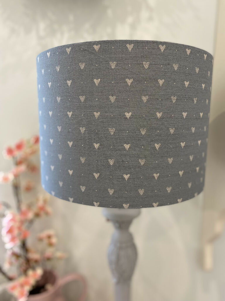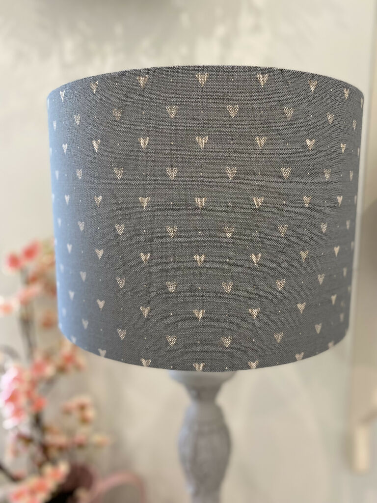 30cm drum lampshade can be made for ceiling or table fitting and made in our ever so popular exclusive Hearts design.