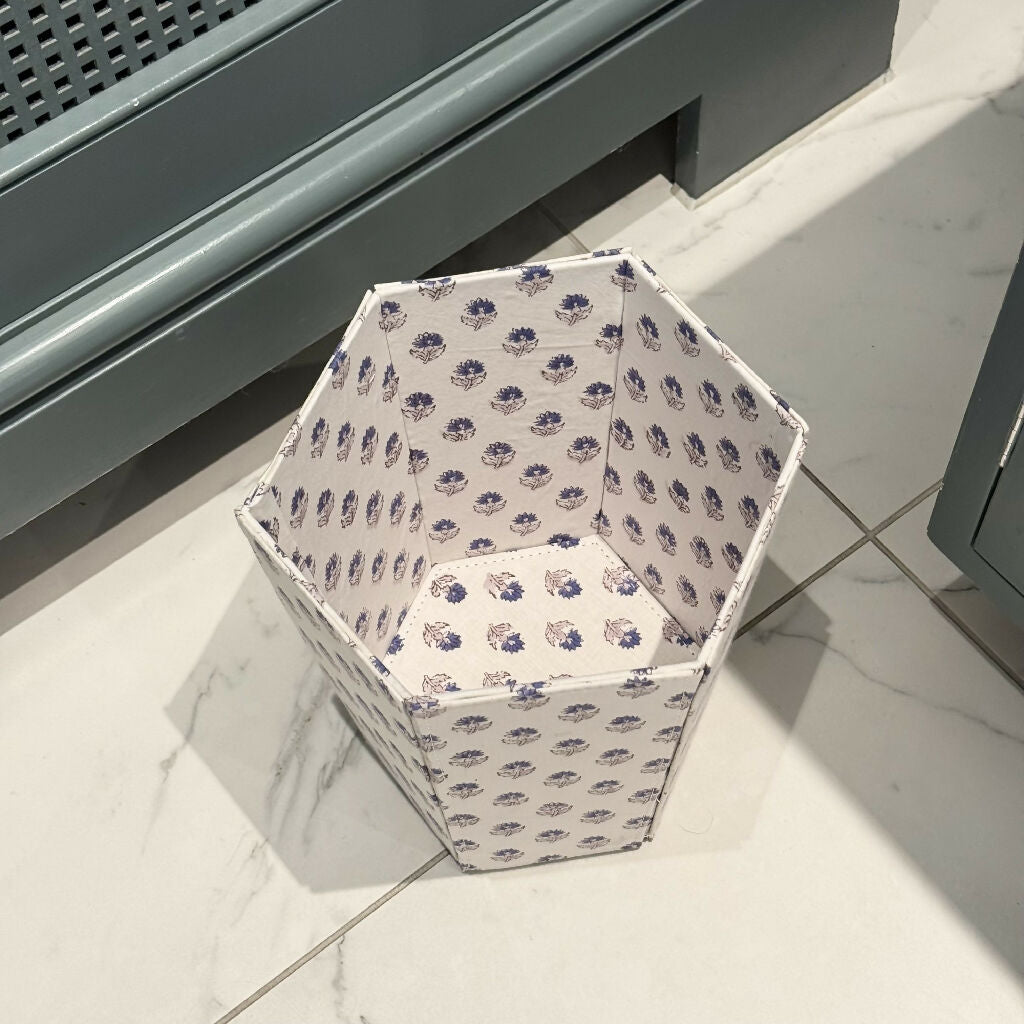 Tidy up in style with our Blue Floral Paper Waste Bin, made from 100% cotton and hand block printed by artisans in India. Lightweight, foldable and easy to use, this fabric bin is perfect for bedrooms, home offices, bathrooms, or under a dressing table.