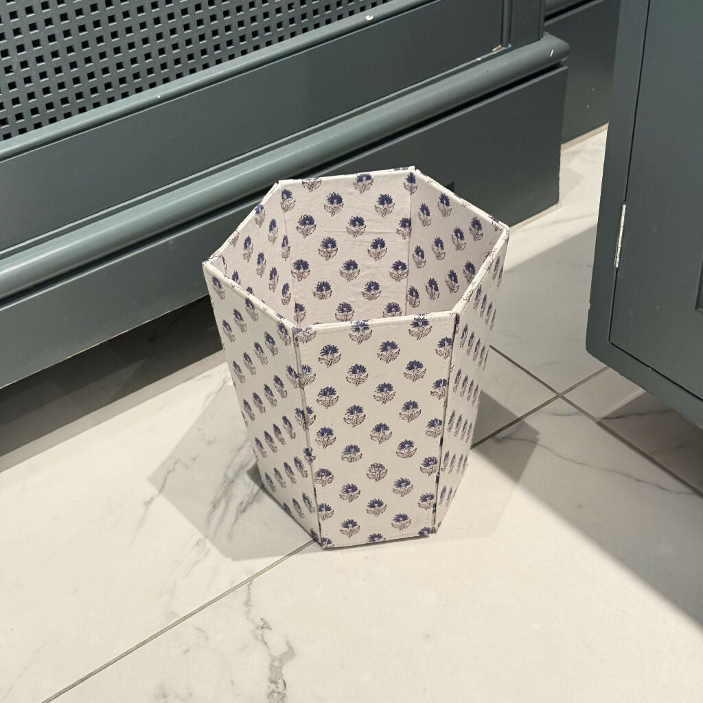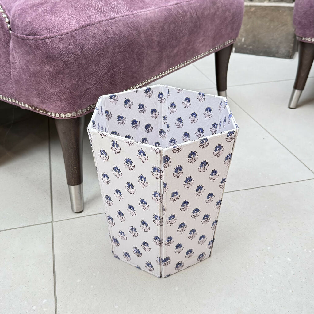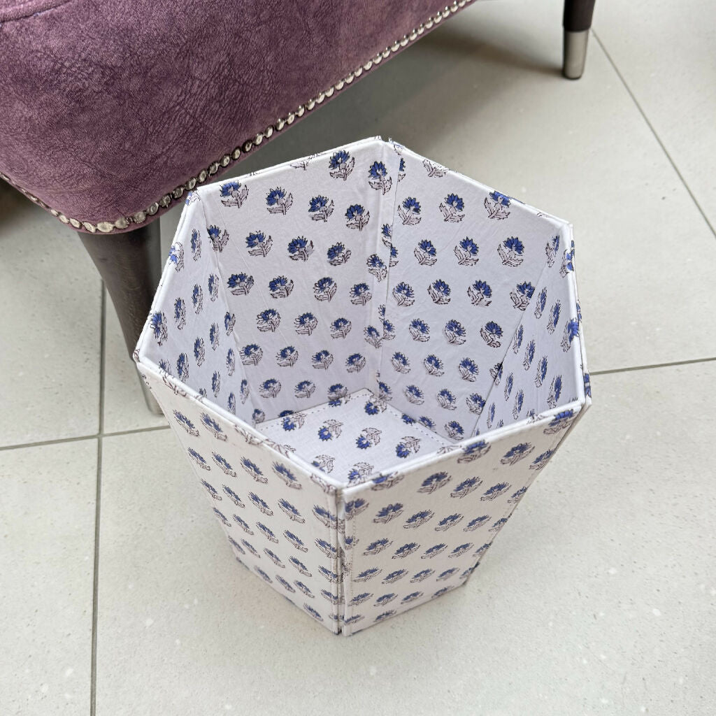 Blue Floral Paper Waste Bin – Foldable Fabric Bin with Hand Block Printed Design