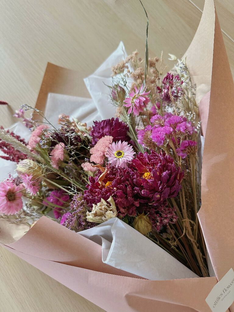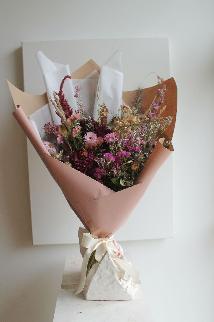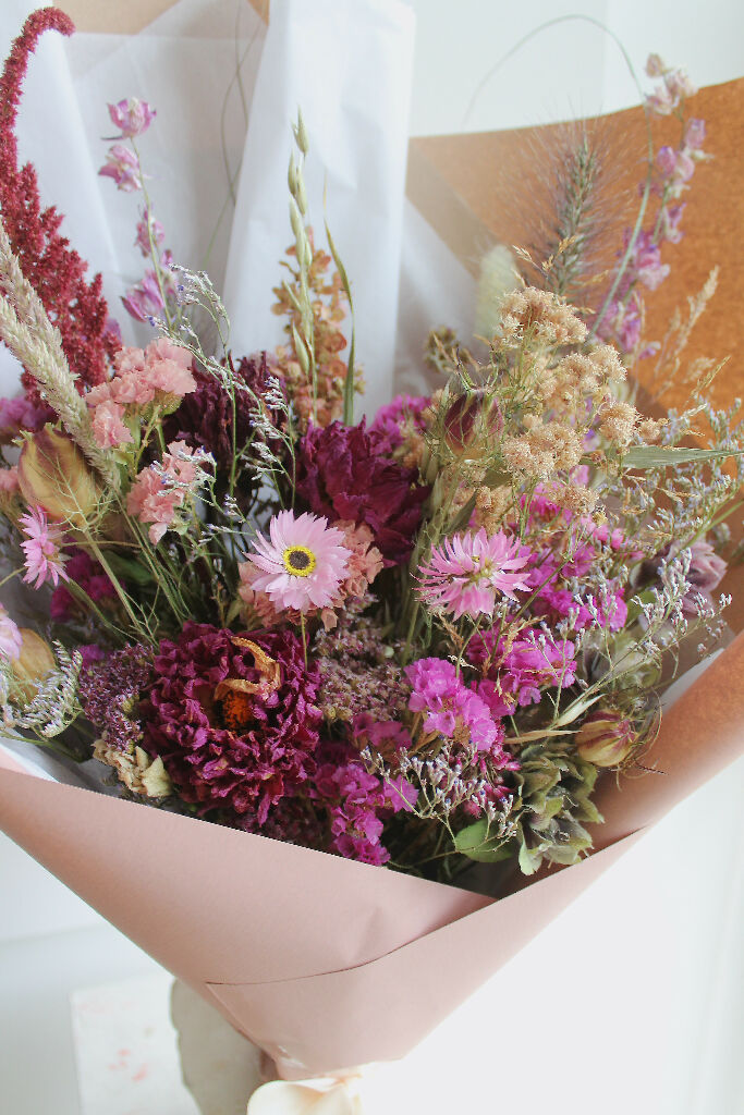 A beautiful dried flower bouquet made from a mixture of stunning flowers to create stunning arrangement for your home. The flowers have been grown by us in our flower field and then picked and dried in our studio.