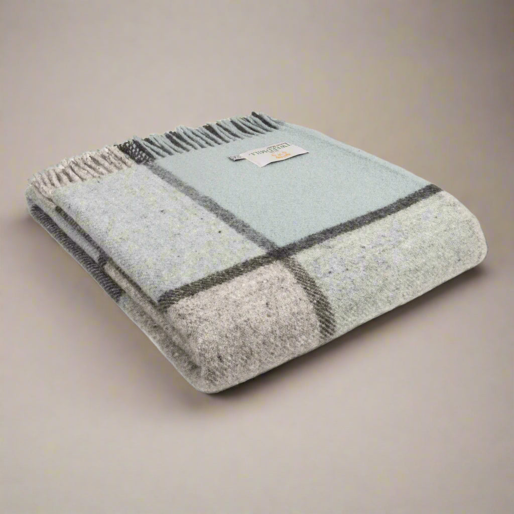 Beautiful 100% pure new wool throw in soft colours of duck egg, charcoal & & silver greys Multi Check with matching fringe and has our own exclusive Oscar and Tilly label. Warm, soft and perfect for use as a sofa throw, rug, blanket, or an addition to bedding. So, banish your winter blues by wrapping this throw around you as you sit in front of your fire!