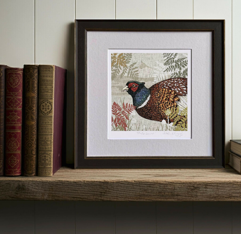 Inspired by the beauty of the British Countryside this hand-drawn print with an etched feel depicts a Pheasant amongst ferns. High-quality signed Giclée print of an original ar...