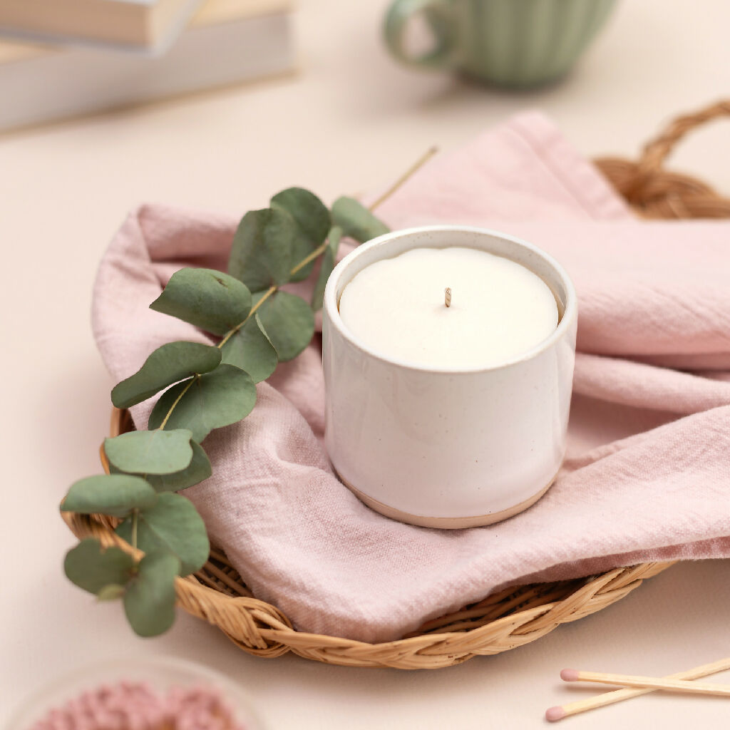 Hand-thrown ceramic candle pot in sage green with a candle refill of your choice. Each candle refill is created by combining natural rapeseed and coconut wax with premium frag...