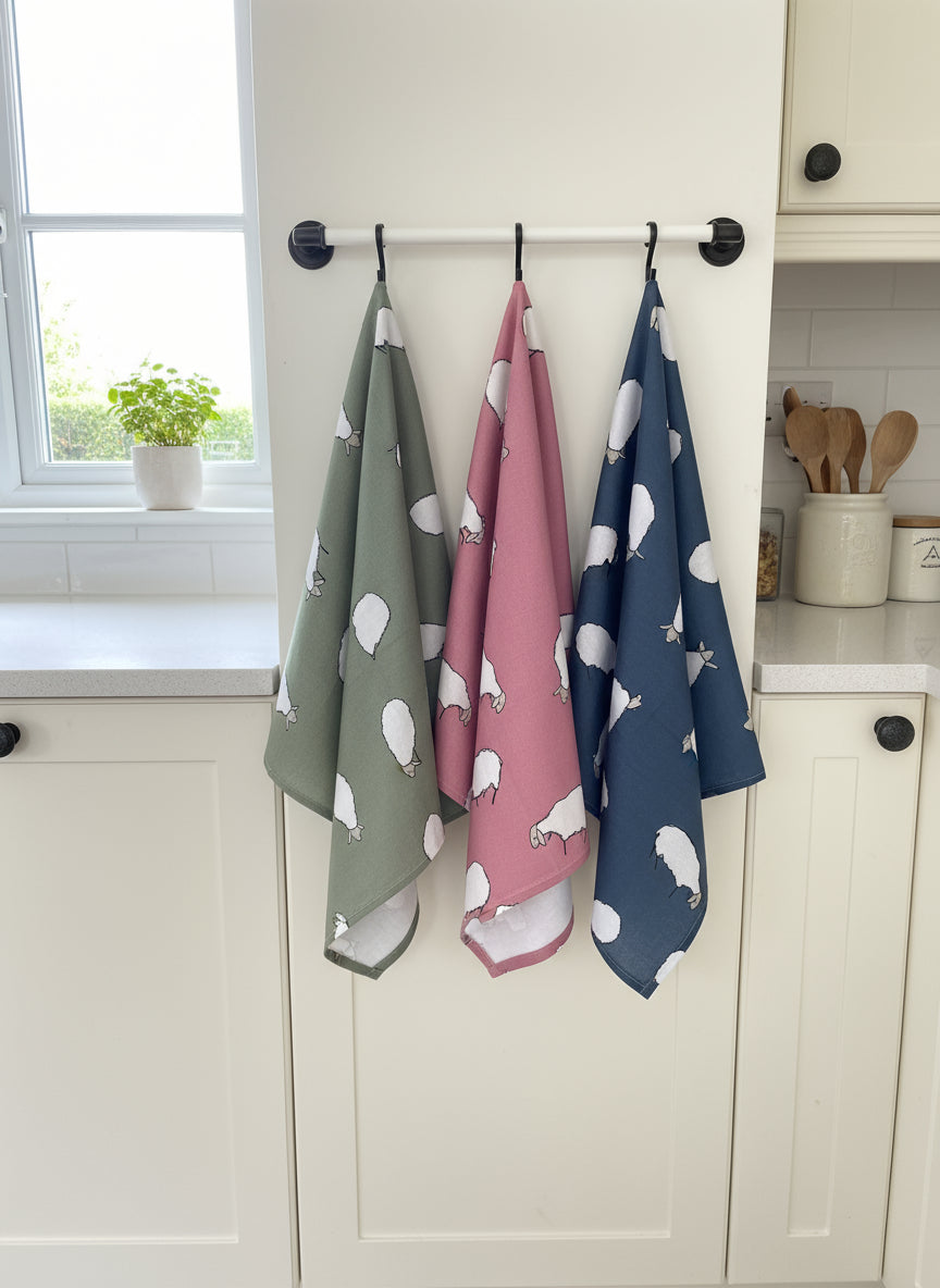 Such an adorable creature, adorning the hillsides of the countryside, this is a fabulous illustration of sheep tea towels can brighten up your kitchen any day giving a country style look.