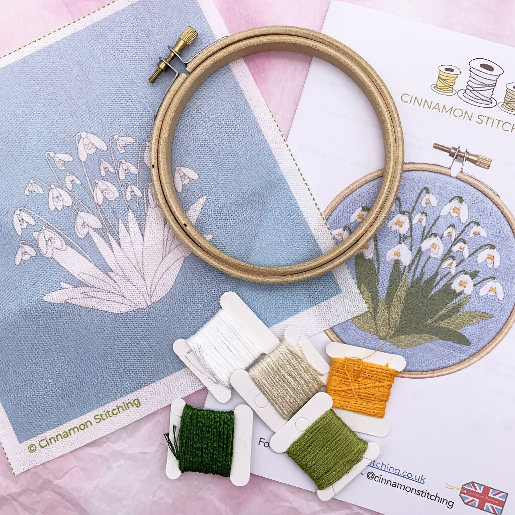 Capture the elegance of early spring with this Snowdrop Embroidery Kit from Cinnamon Stitching. Designed for both beginners and seasoned stitchers, this charming kit features delicate snowdrop flowers - a symbol of hope and new beginnings.