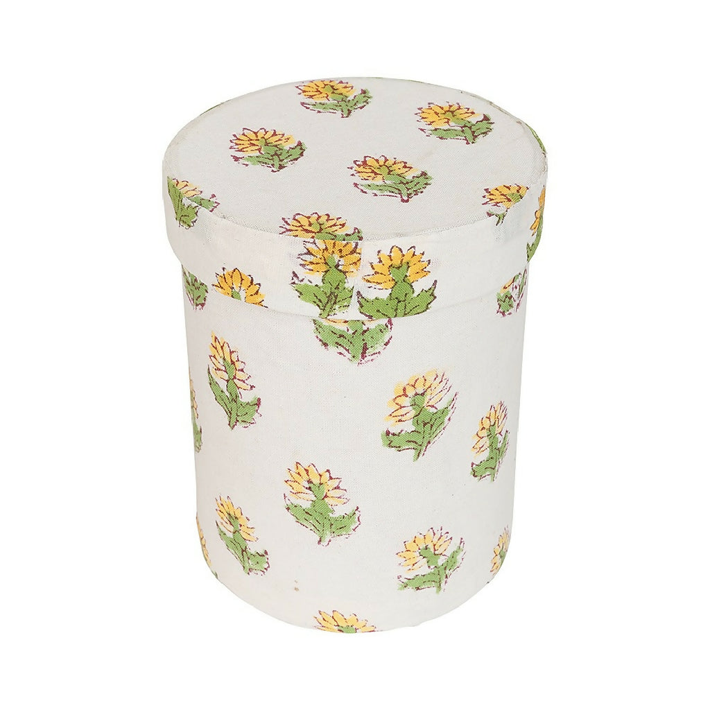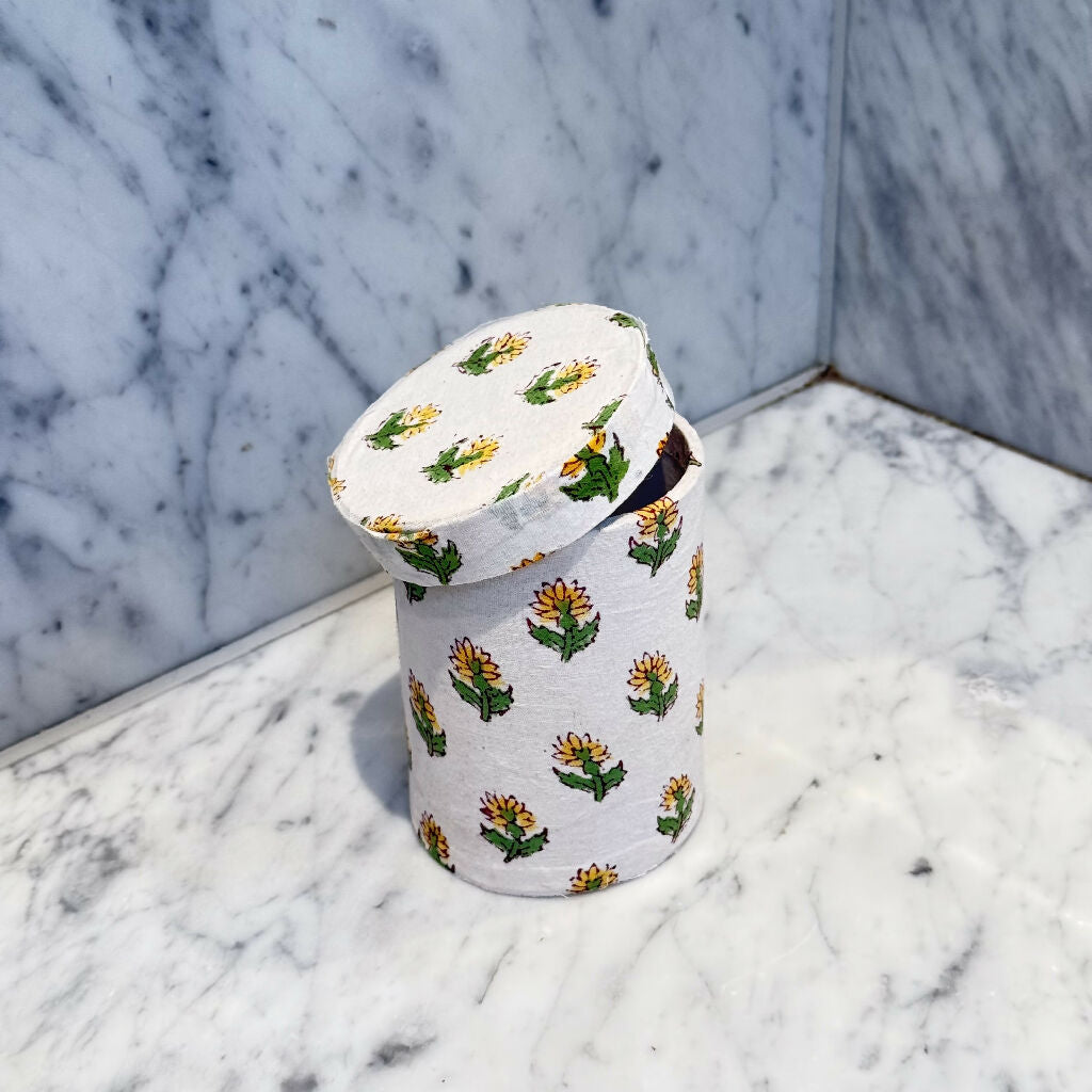 Yellow Floral Pen Pot Holder – Hand Block Printed Fabric Pot for Desk, Vanity or Bathroom Storage