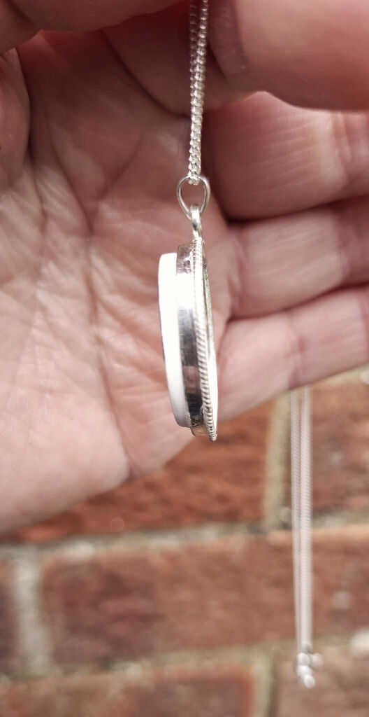 20 x 18mm oval pendant with rope effect finish which includes a 450mm sterling silver curb chain.