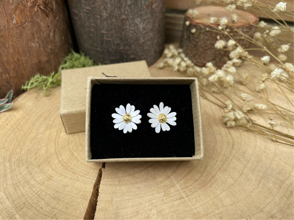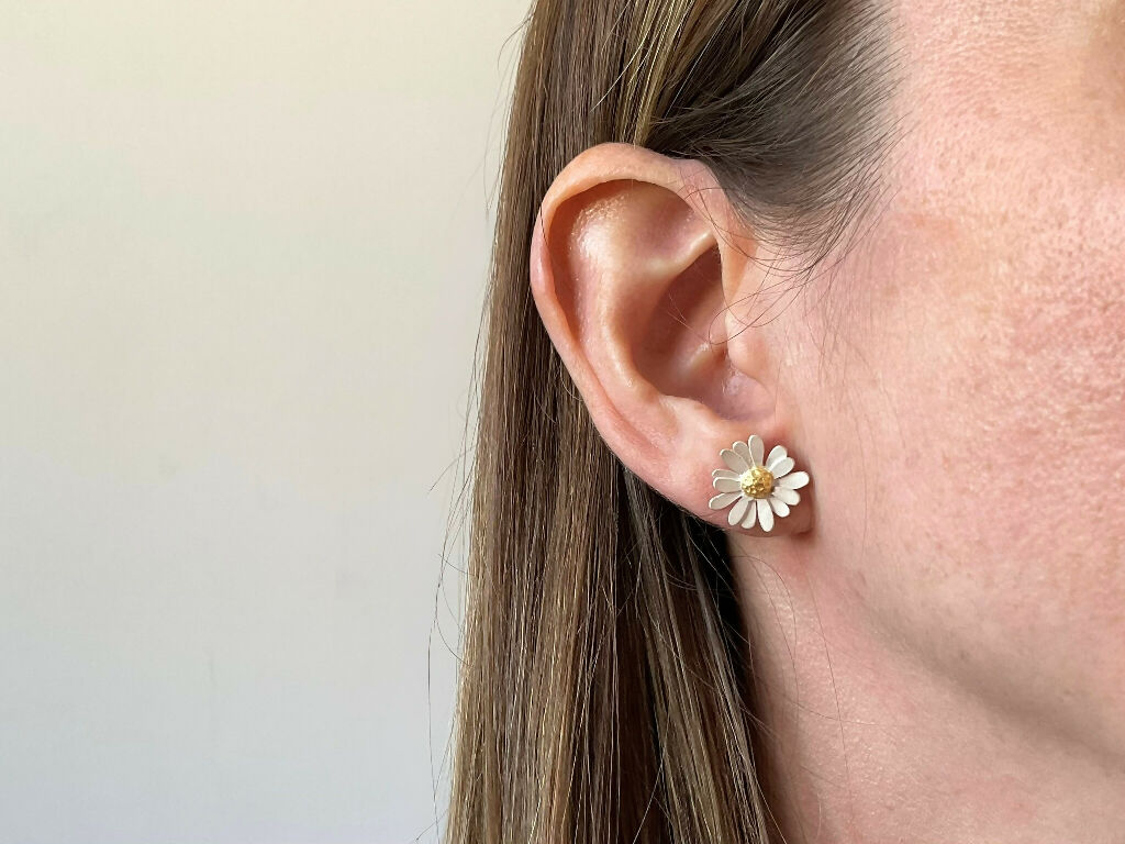 These striking stud earrings capture the joyful spirit of daisies, inspired by British wild meadows.