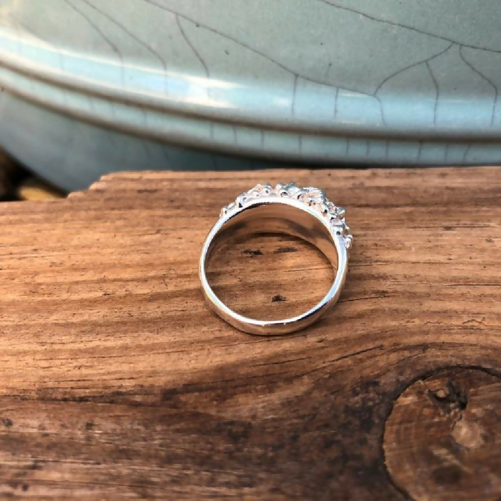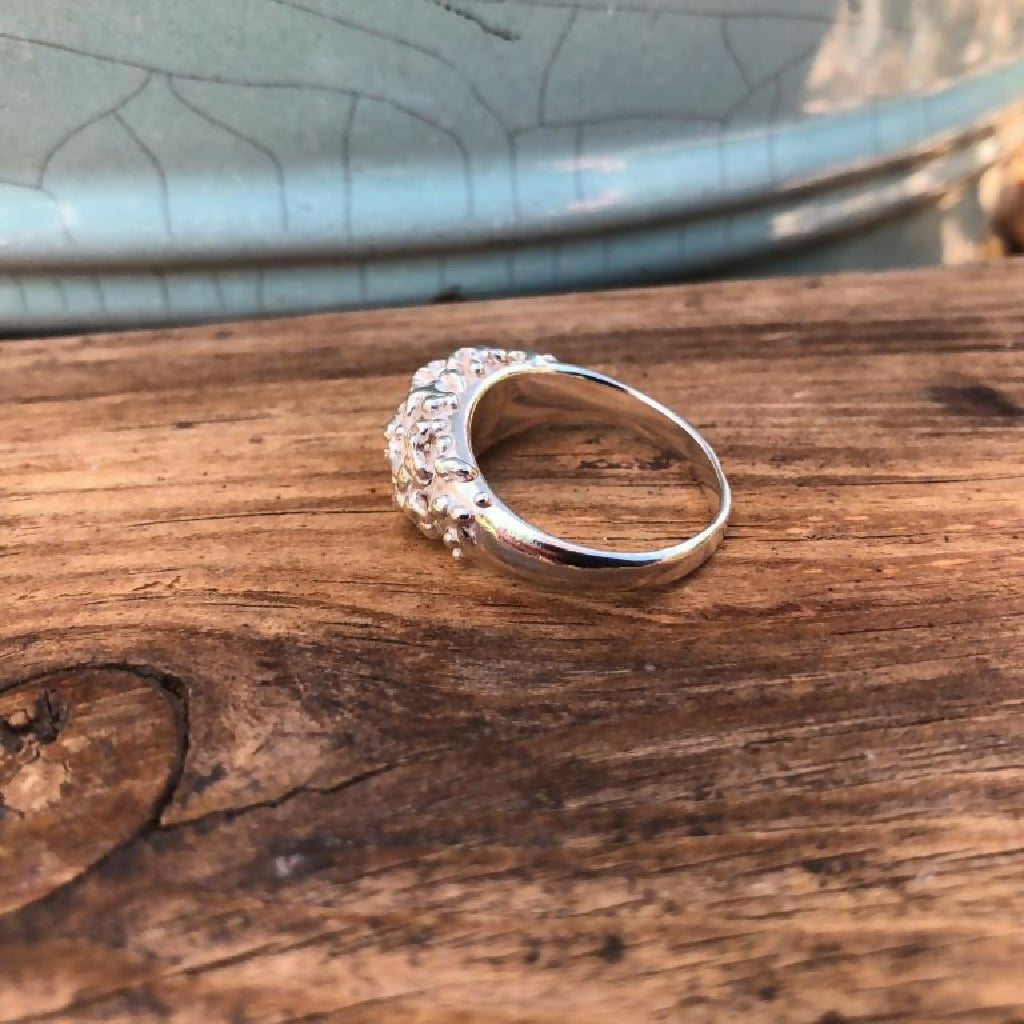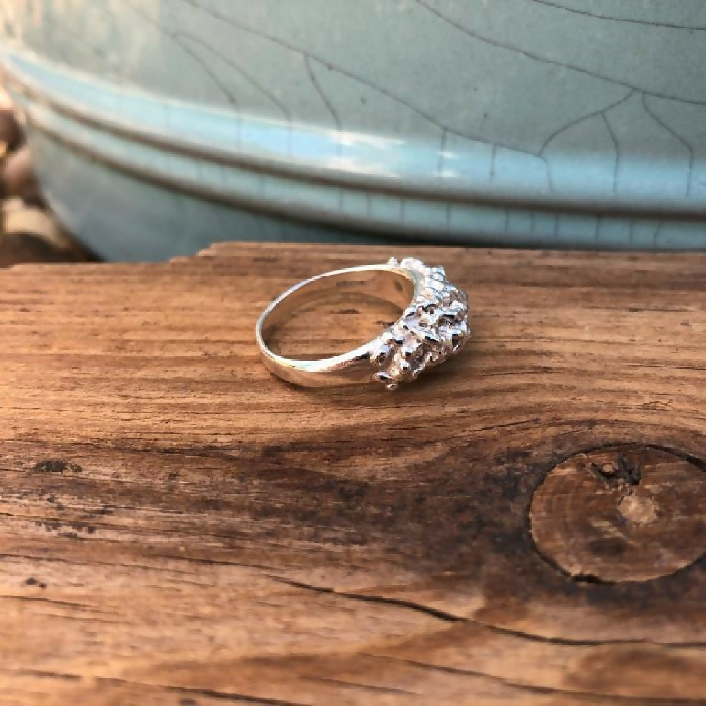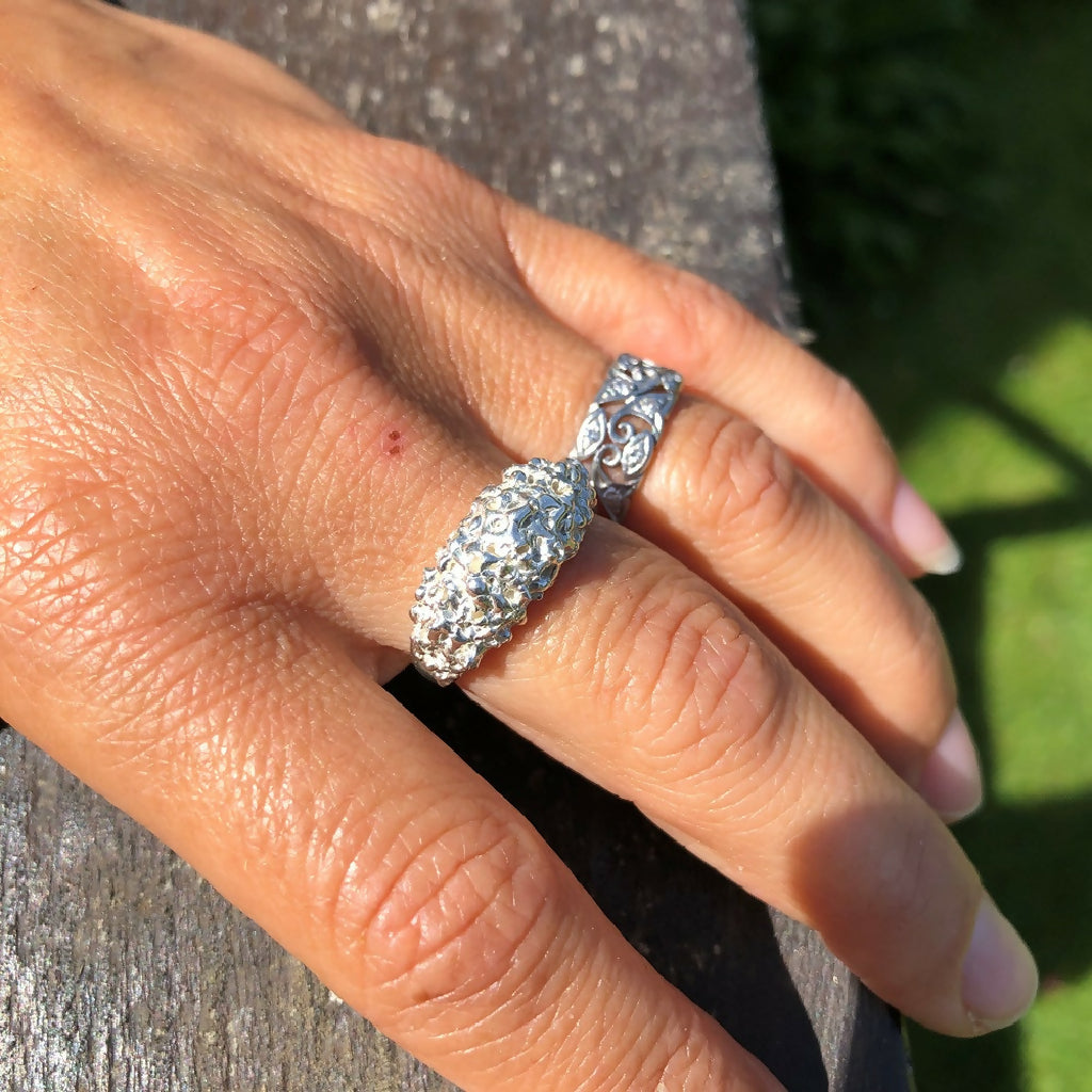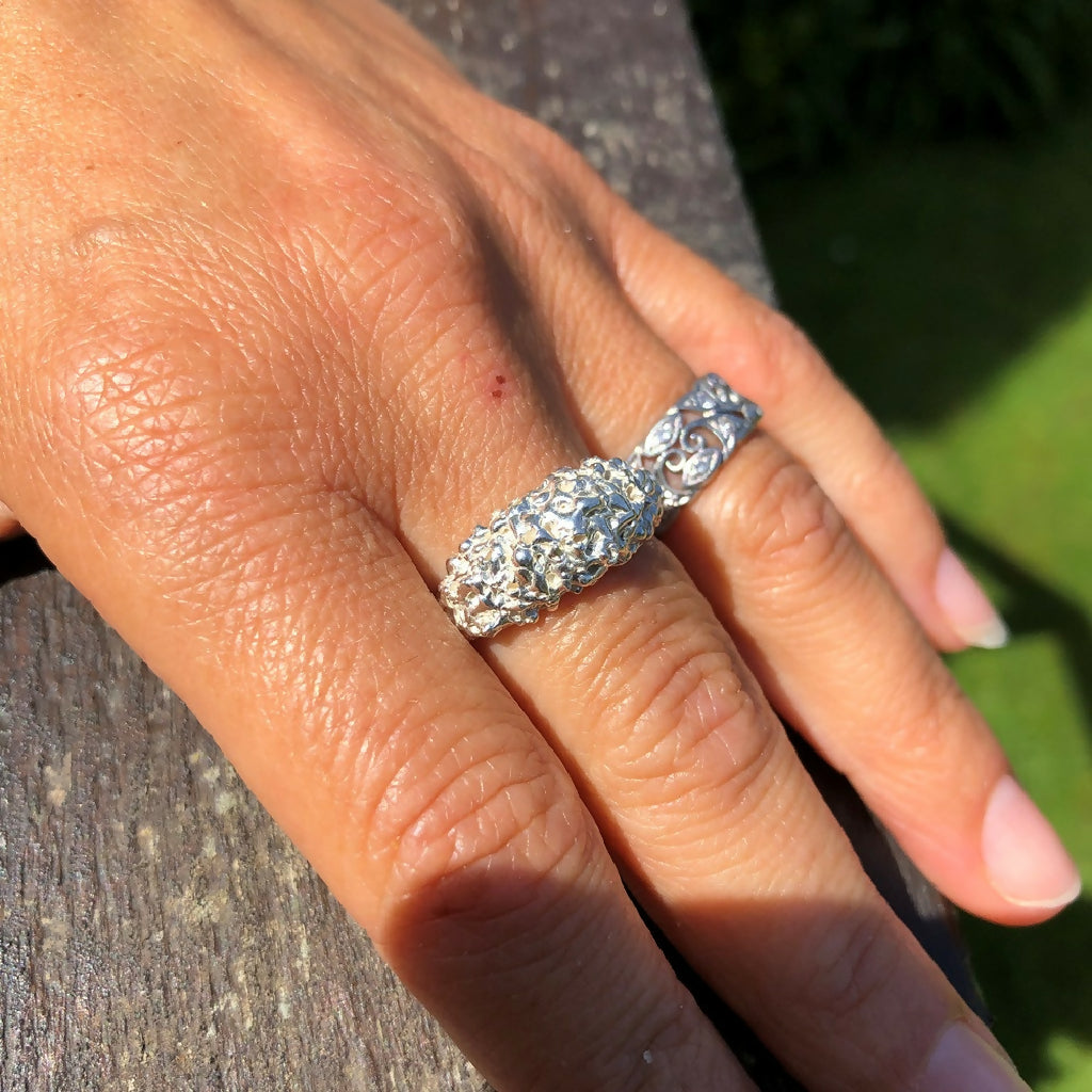 This organic cast sterling silver ring is inspired by the rugged beauty of my local beach in West Cornwall—where I often walk with my dog, Jess—this ring captures the intricate details of barnacles, creating a beautifully tactile piece that feels just like the real thing.