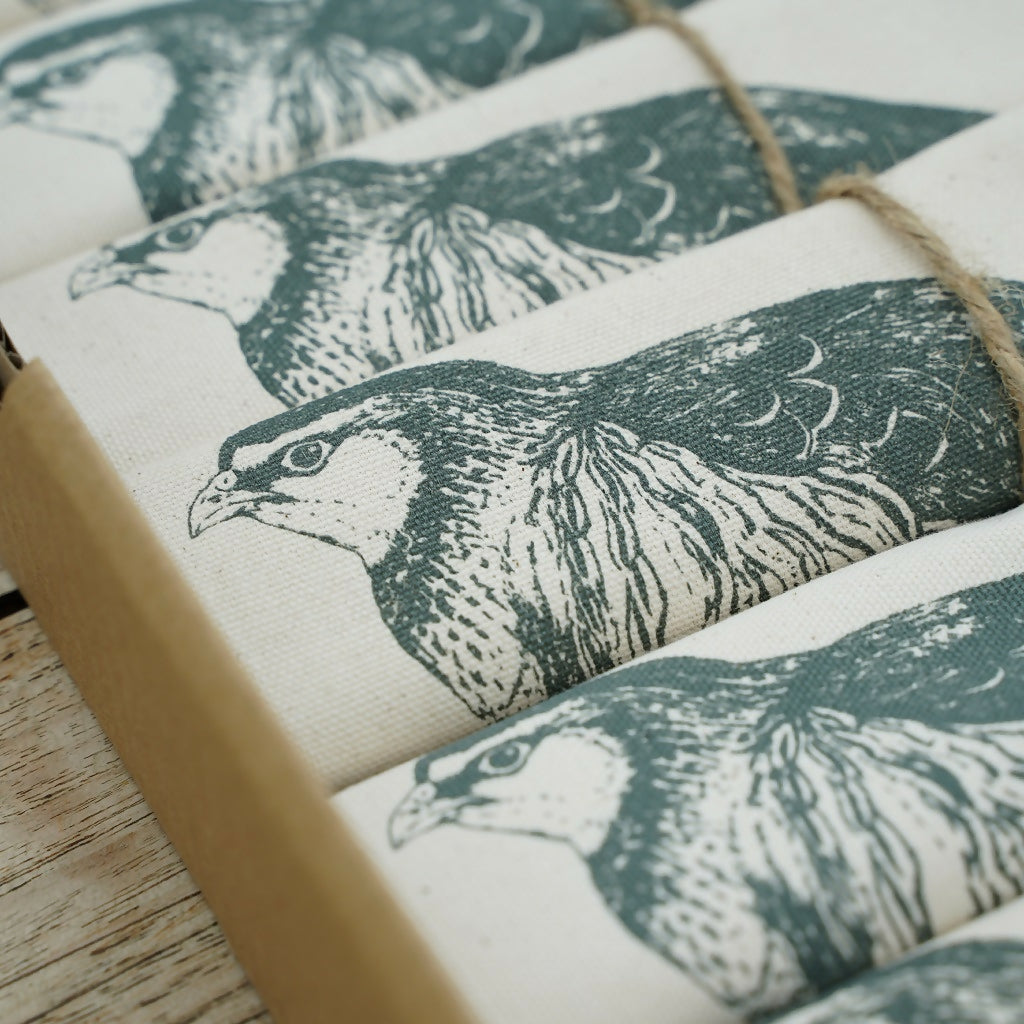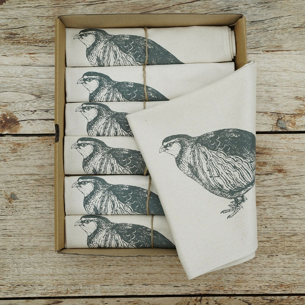 Bring a touch of countryside charm to your table with this set of six organic cotton partridge napkins. Featuring Lou’s charming illustration of a partridge, this thoughtfully composed set is a considered choice for relaxed dining, seasonal gatherings, and those who appreciate traditional countryside living, designed in Hampton-in-Arden.