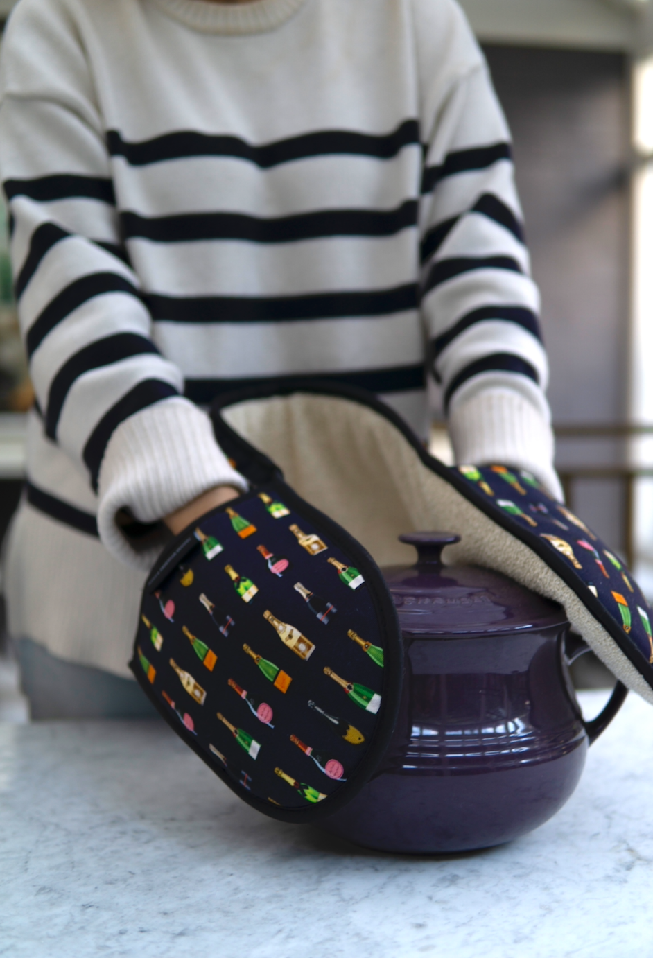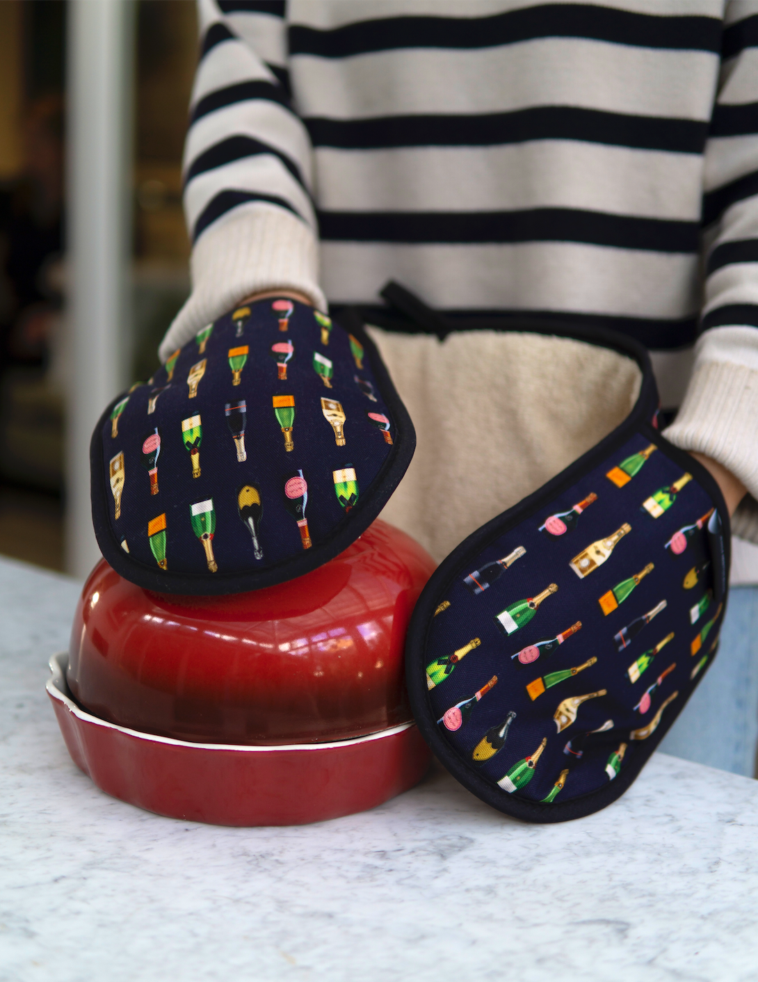 Looking for the perfect 'welcome home' gesture for the excited mover? Or perhaps an upcoming birthday gift for the Champagne fanatic? These double oven gloves ensure their delicious creations get from oven to table safely & in style.