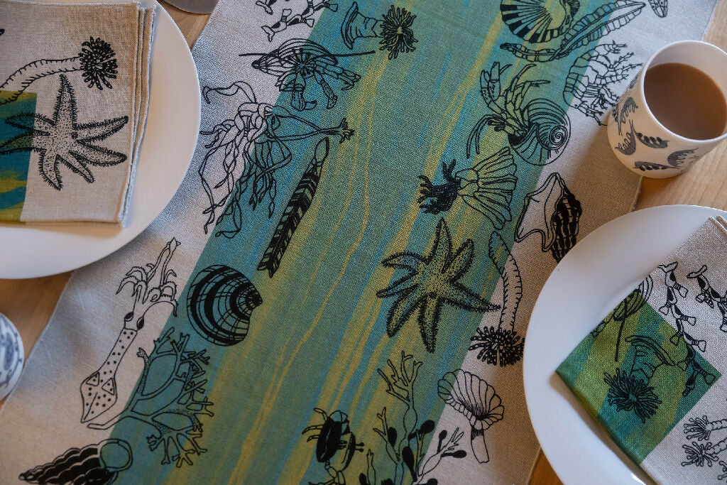The sea creatures on this table runner can all be found in a rockpool somewhere.