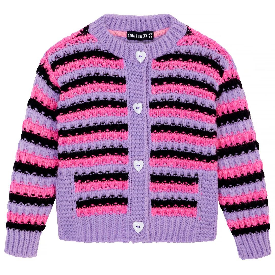Twinning is winning 💜. Our Bernice Mini Me Cardigan is a pint-sized version of our bestselling striped knit, designed so your little one can match in style. With bold lilac, pink and black stripes, playful heart-shaped buttons and cosy rib trims, it’s the ultimate feel-good knit for mini wardrobes.