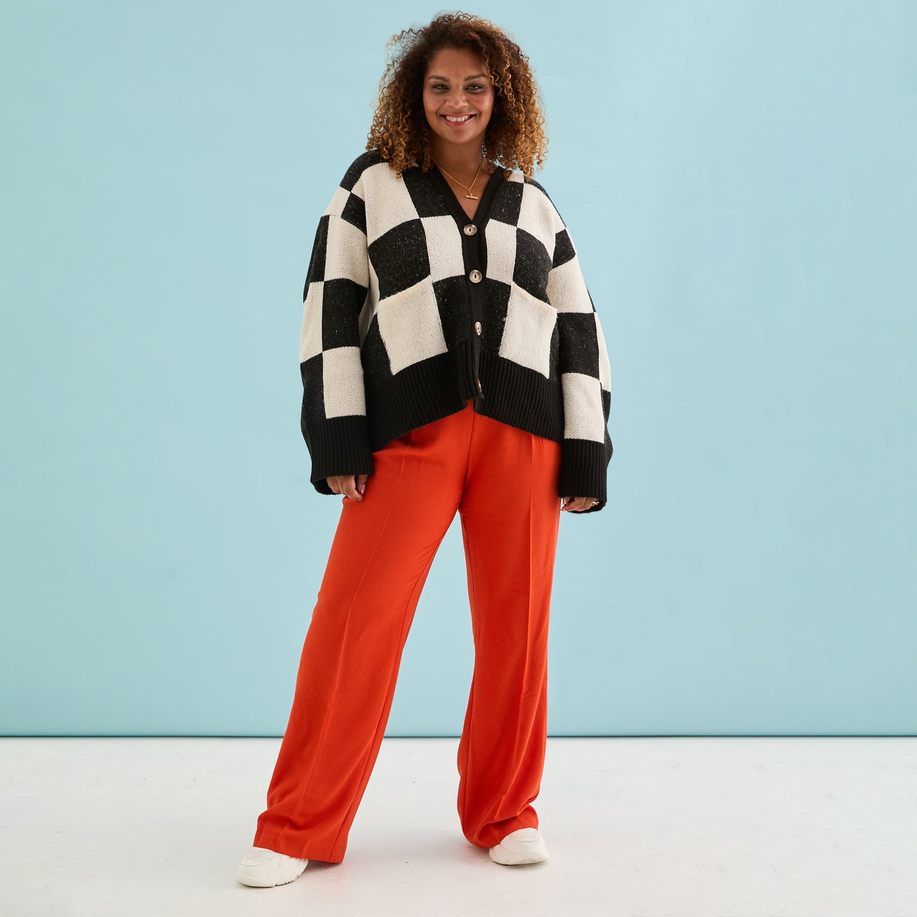Meet Candice, your new go-to oversized cardigan with maximum impact. Featuring a bold black and white checkerboard knit, this chunky knit cardigan brings instant statement style while keeping you cosy in our signature slouchy fit. With its deep V-neckline and chunky button-through front, Candice is as versatile as she is eye-catching.