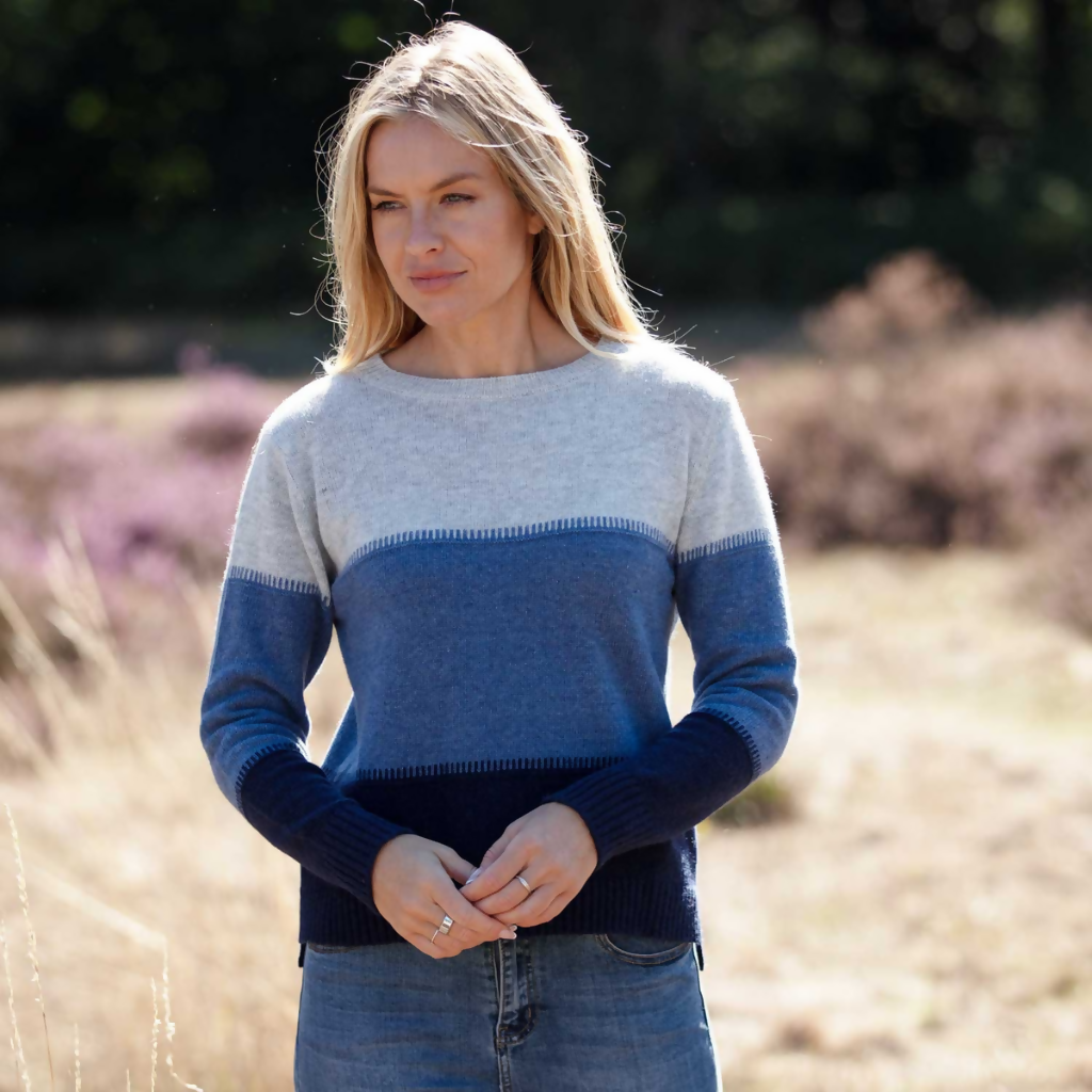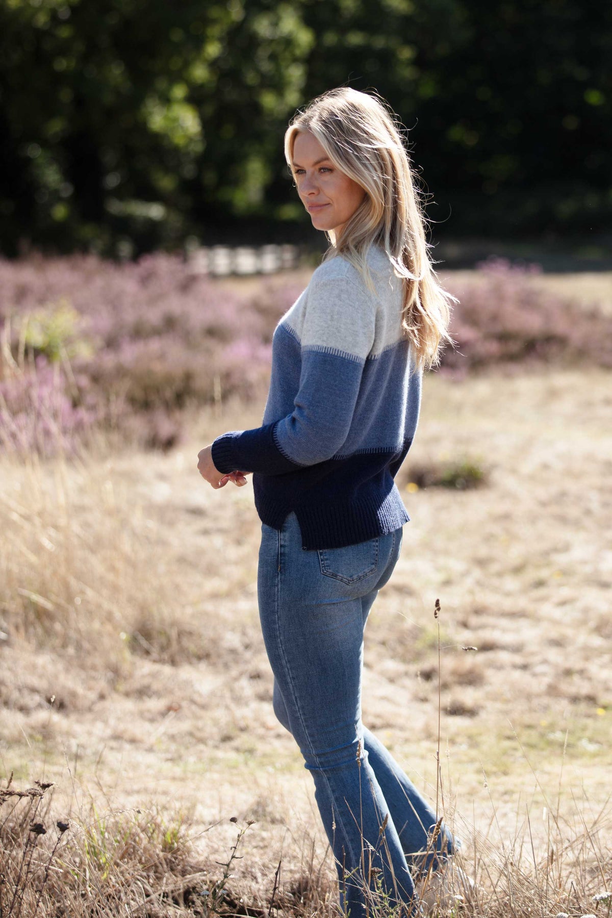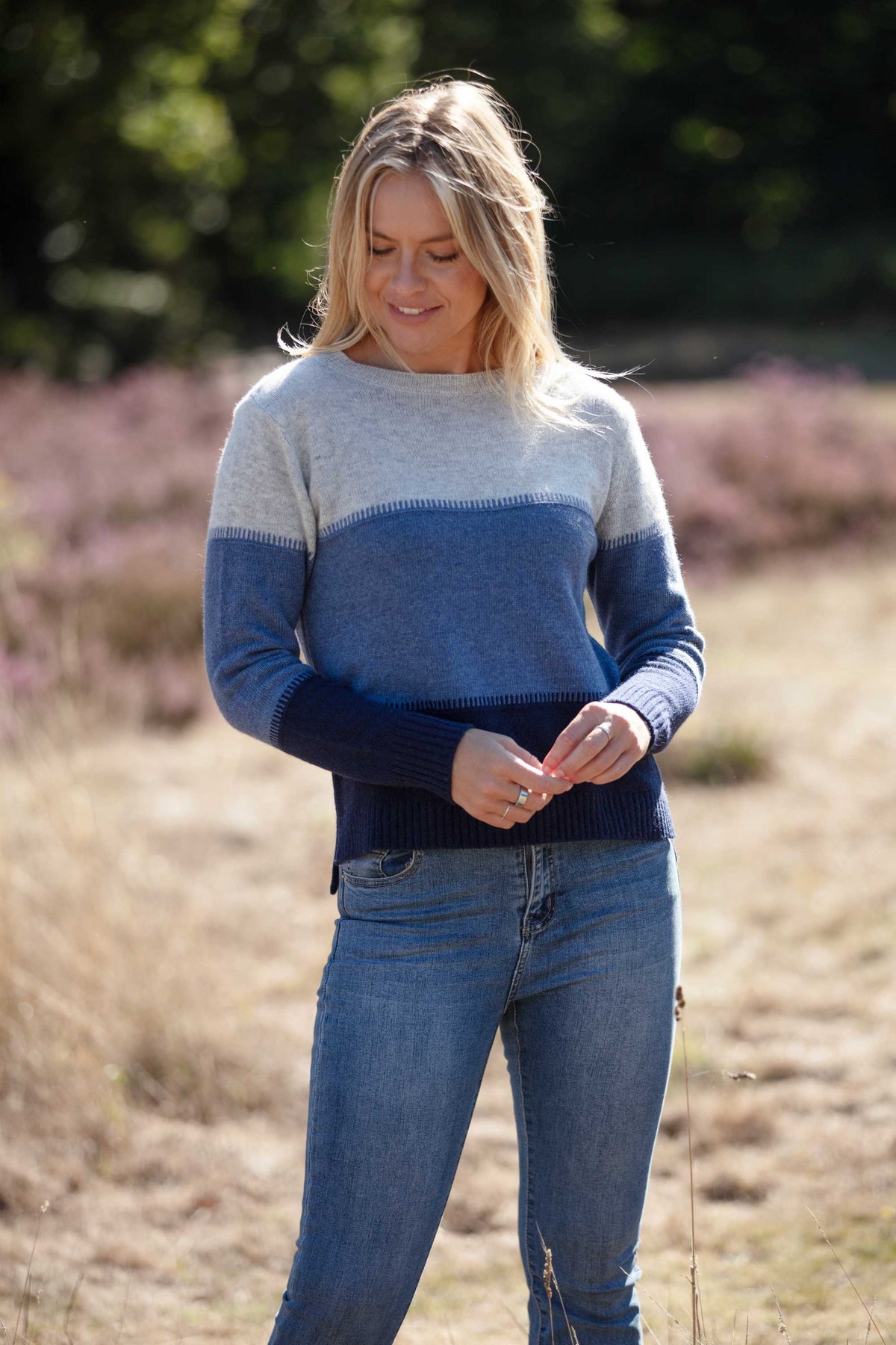 Cashmere Mix Sweater In Grey, Denim & Navy Stripe