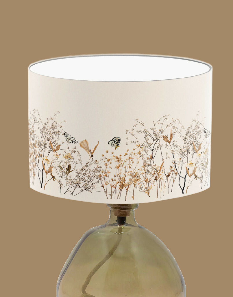 Drum Lampshade with an Autumn/neutral tone wildflower print.