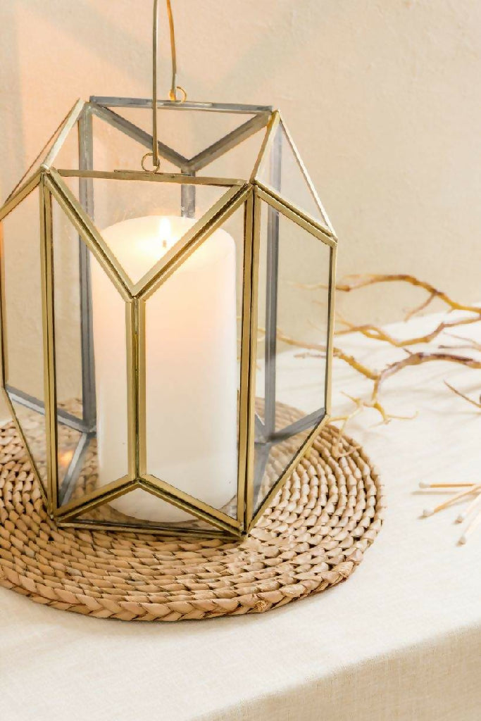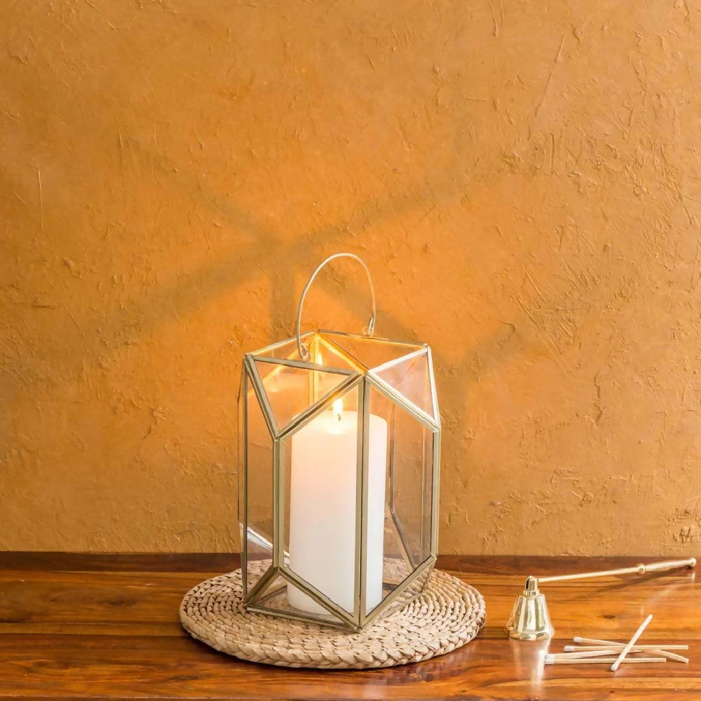 Gold Geometric Glass Lantern