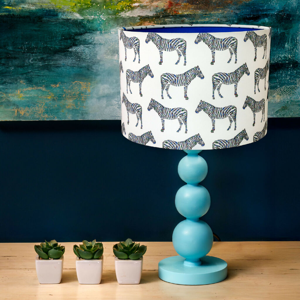 Bring playful character and bold style into your home with this beautifully handcrafted zebra lampshade. Featuring a charming hand-drawn illustration, this striking design adds a joyful pop of personality and a splash of colour to any room.