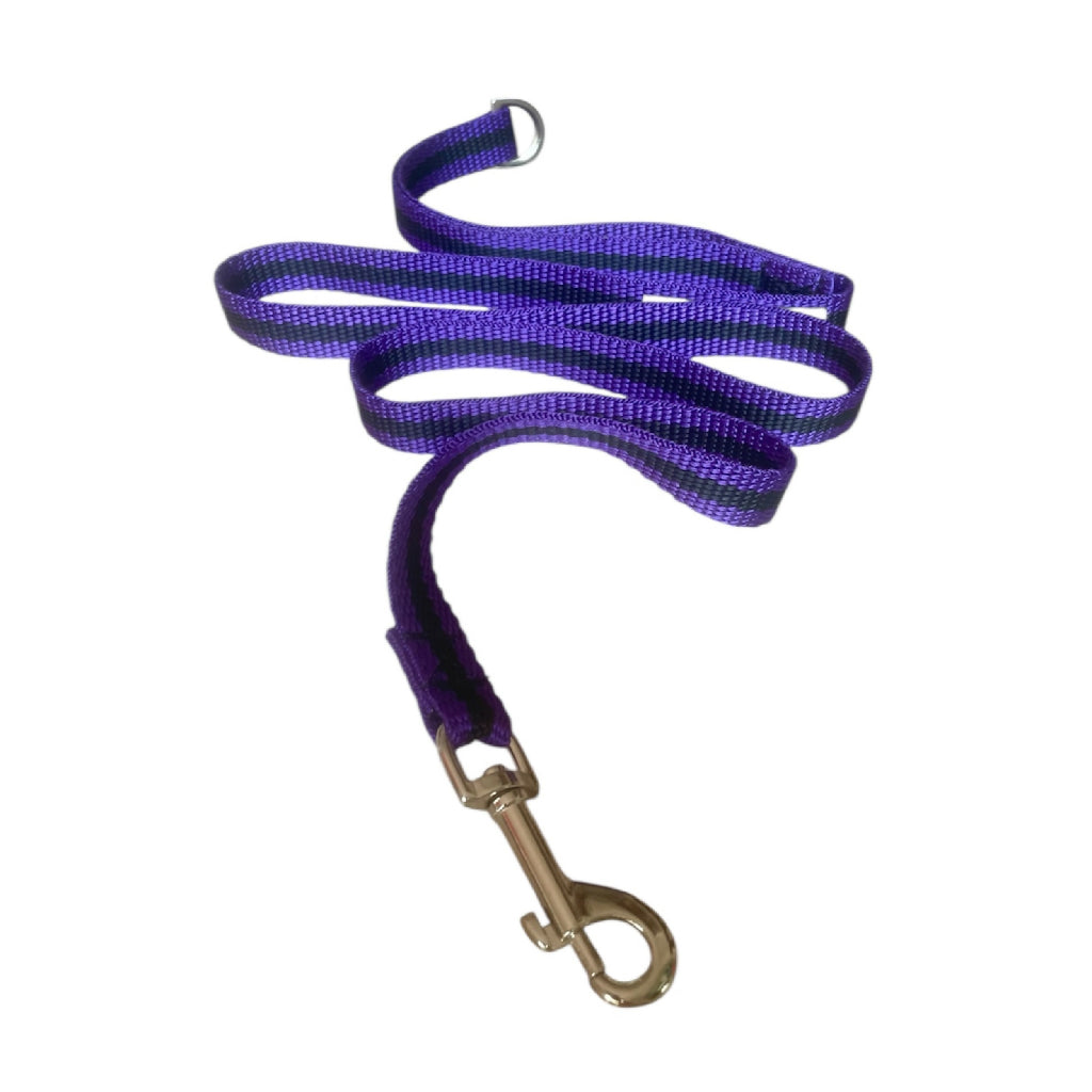 Smart super tough machine washable, webbing dog lead in a vibrant purple and black stripe