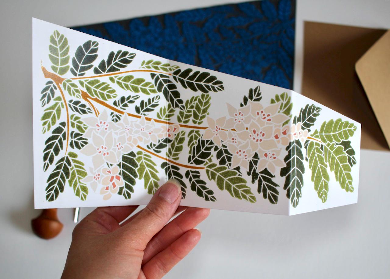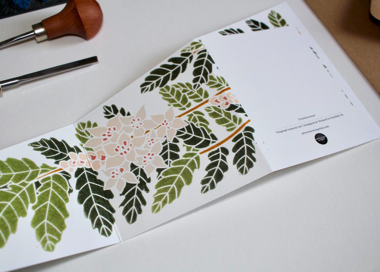 Frankincense - once more valuable than gold and one of the treasured gifts brought by the Magi to Jesus Christ. Wish your friends and family festive holiday greetings with this double-sided, botanical Frankincense card. A unique, sloped and concertina folded card, which is designed to stand out.