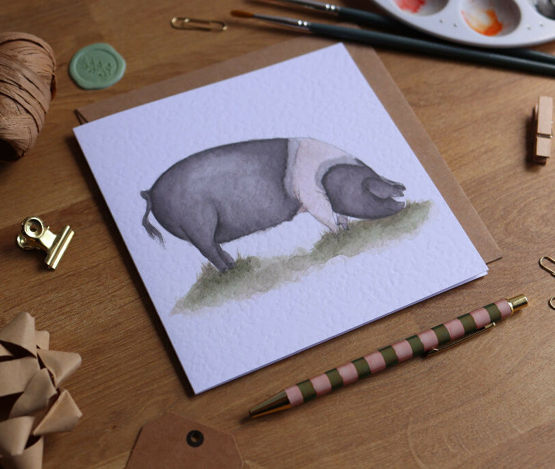 Featuring a watercolour illustration of a saddleback pig. Why not create the perfect gift and pair it with a matching keyring or coaster.