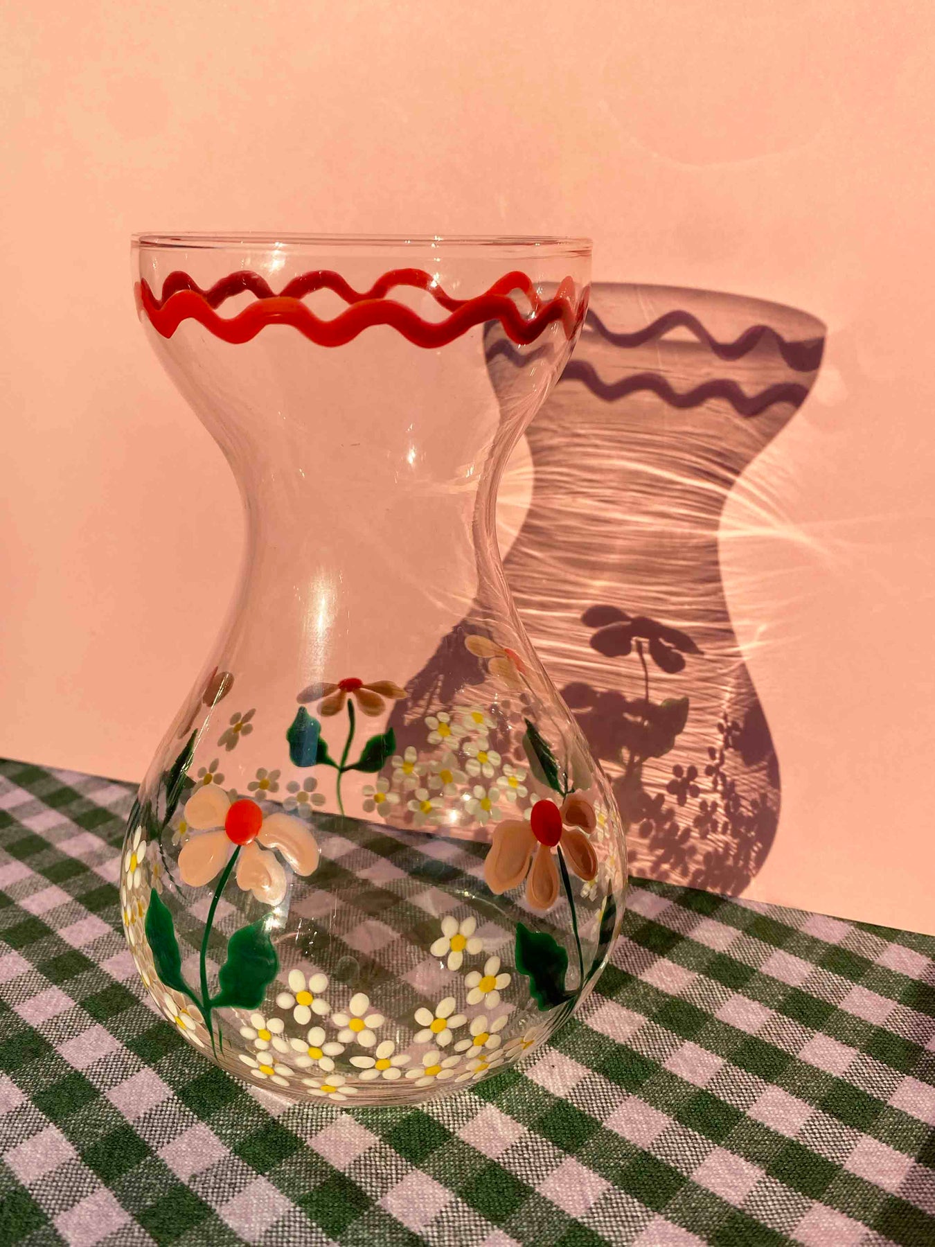 Hand painted by Louise in her little London studio using non-toxic paints. This is painted onto a vintage hyacinth vase so there is only one available. This vase is 14cm high, 9cm at widest point and 6cm diameter at base.