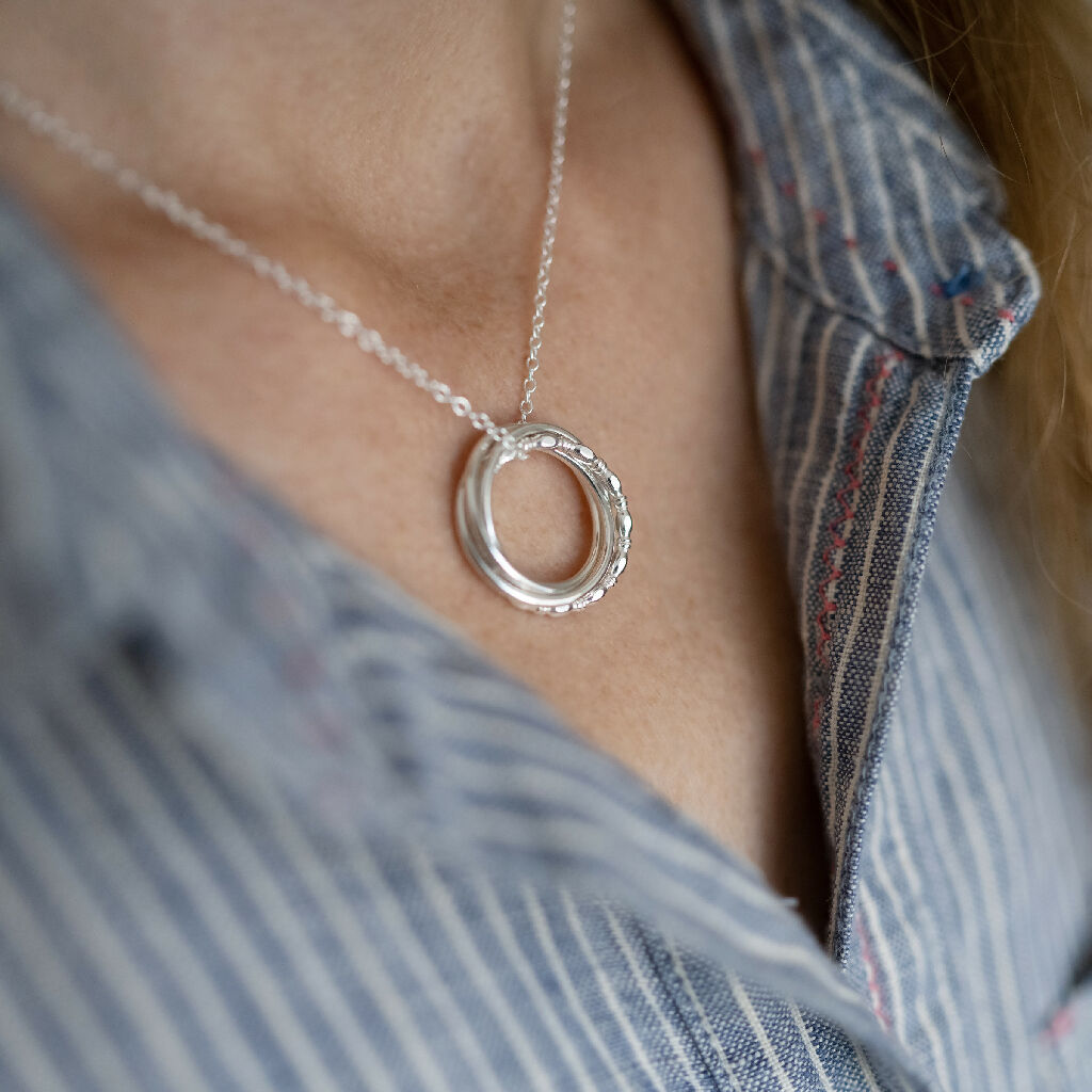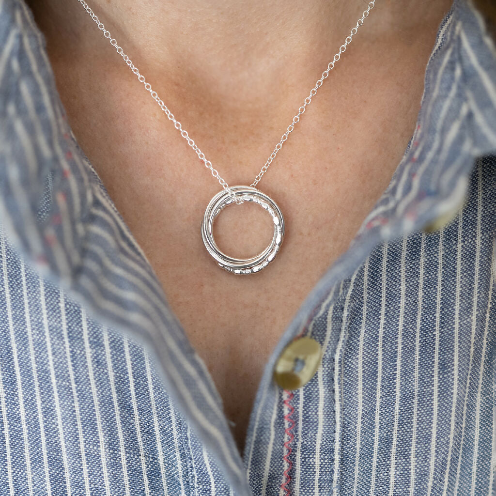 They’re also a popular choice as a family necklace and a celebration of life long friendships with each ring representing each person.