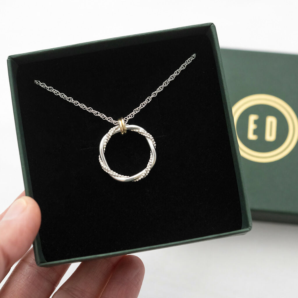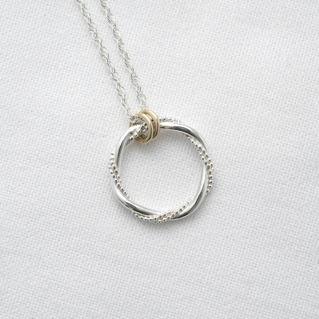 An elegant entwined sterling silver necklace featuring a touch of 9ct solid gold.