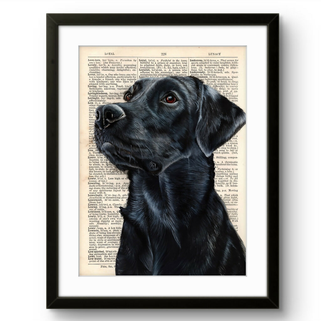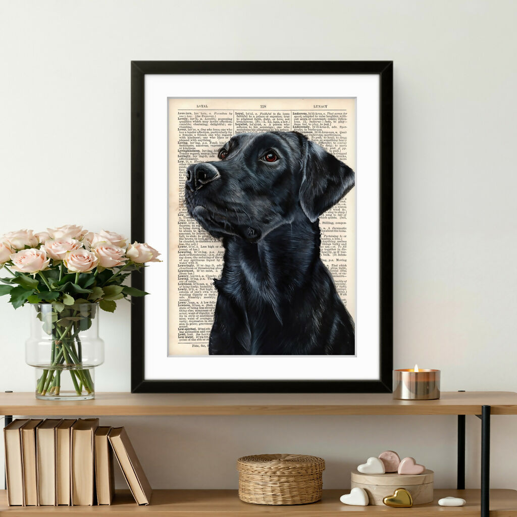 Bring timeless countryside charm into your home with these beautifully detailed black Labrador art prints.