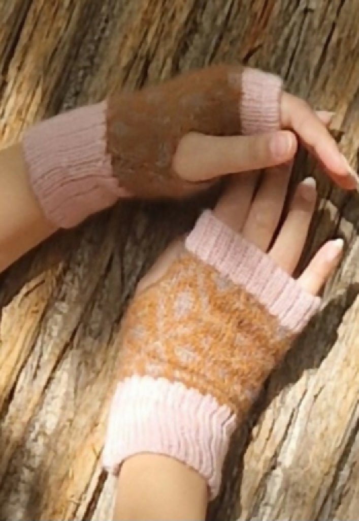 Stay cozy in style with these beautifully hand-knitted fingerless gloves, crafted in soft dusky pink and warm chocolate brown wool. Designed for both comfort and charm, they keep your hands snug while leaving your fingers free — perfect for reading, writing, typing, or sipping coffee on chilly mornings.
