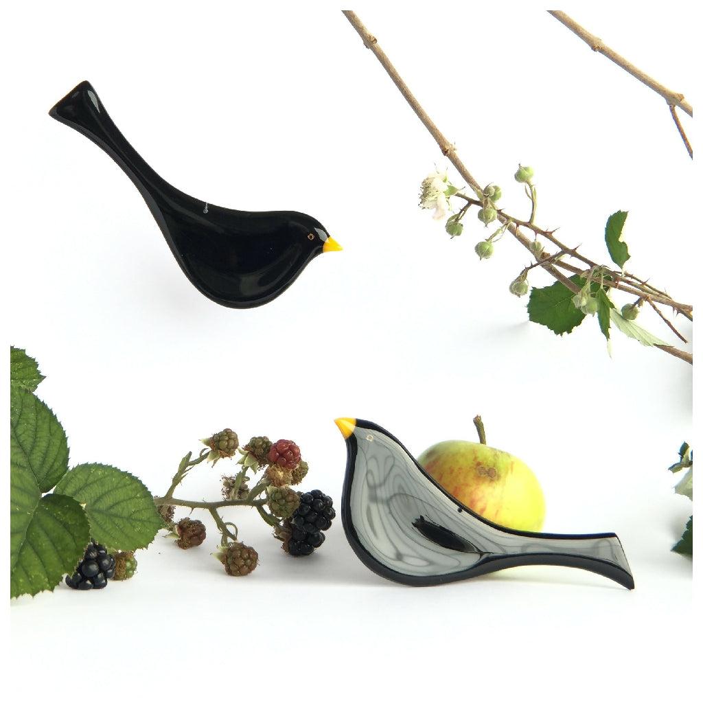 Please note that each blackbird will vary slightly in length and tummy shape. This piece is made from opaque black glass.