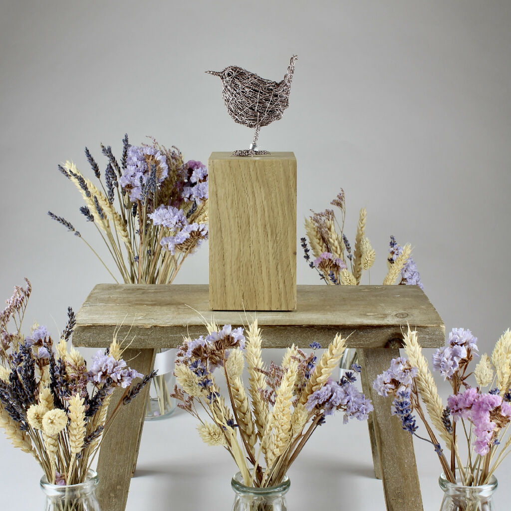 Showcasing the strength and resilience of the wonderful wren, this sculpture has been carefully handmade to reflect the charm and distinctive shape of this beautiful bird, with its characteristic tail sticking up in the air.
