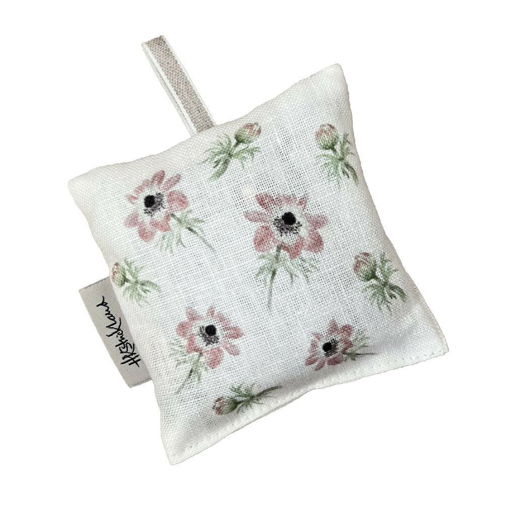This pretty lavender bag with scattered anemones printed on pure linen, is a printed on pure linen, is a perfect small 'thank you' – or just a treat for yourself! Match with the anemones linen storage nest for a unique birthday gift.
