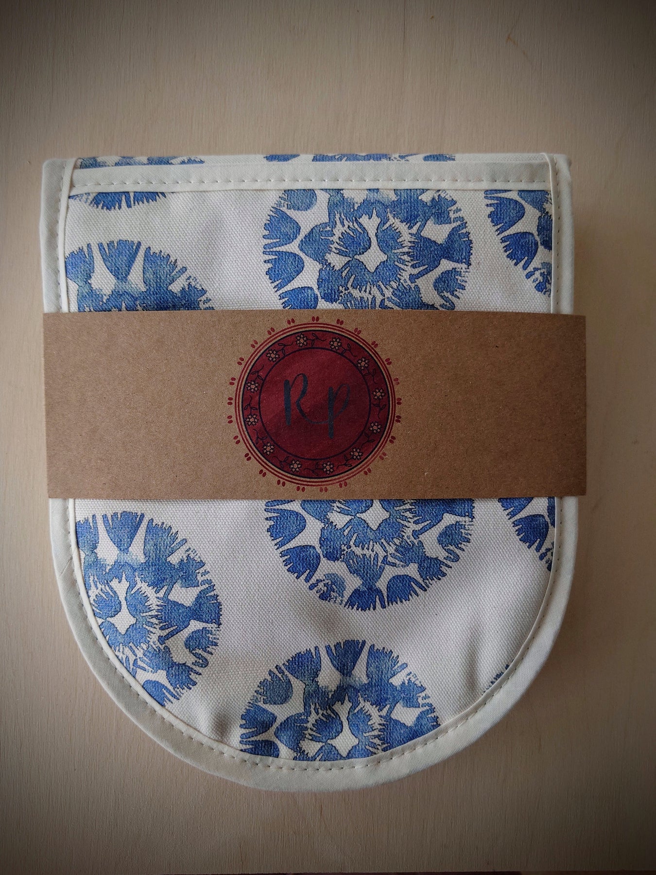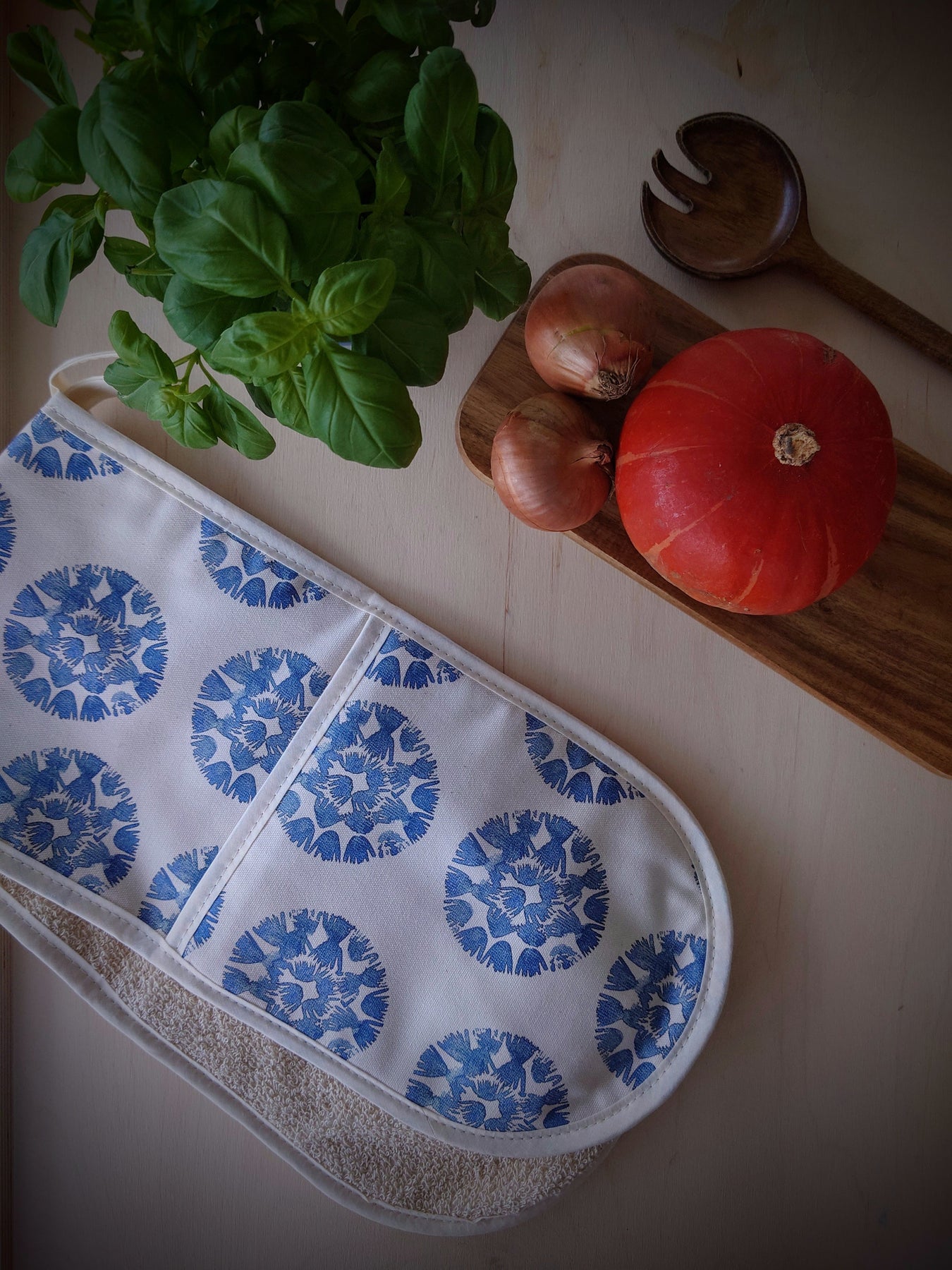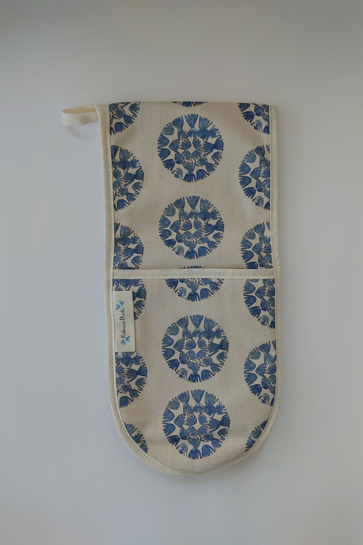 Each oven glove may differ slightly due to the handmade quality. The placement of the print will be individual to every product to maintain its unique quality.