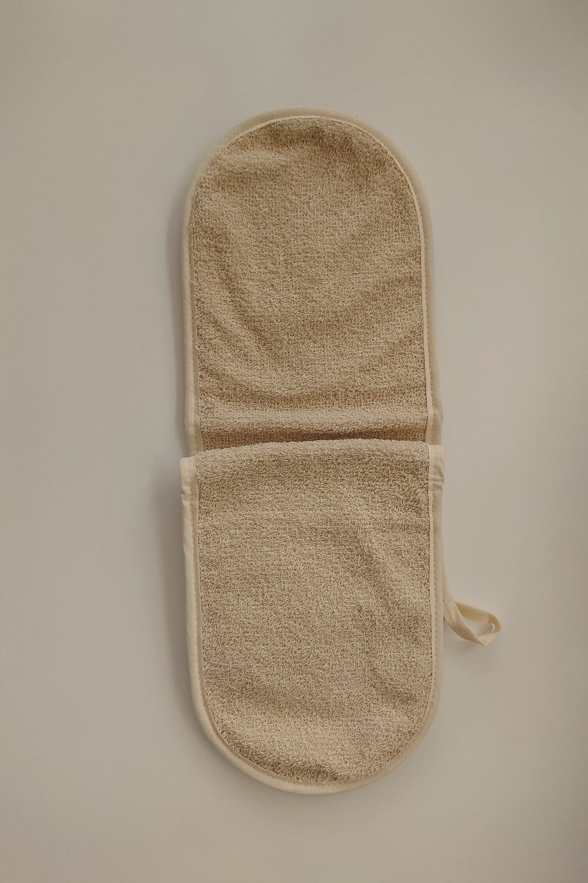 100% organic panama natural cotton with protective towelling for protection from the heat. Roomy fit to allow for all hand shapes.