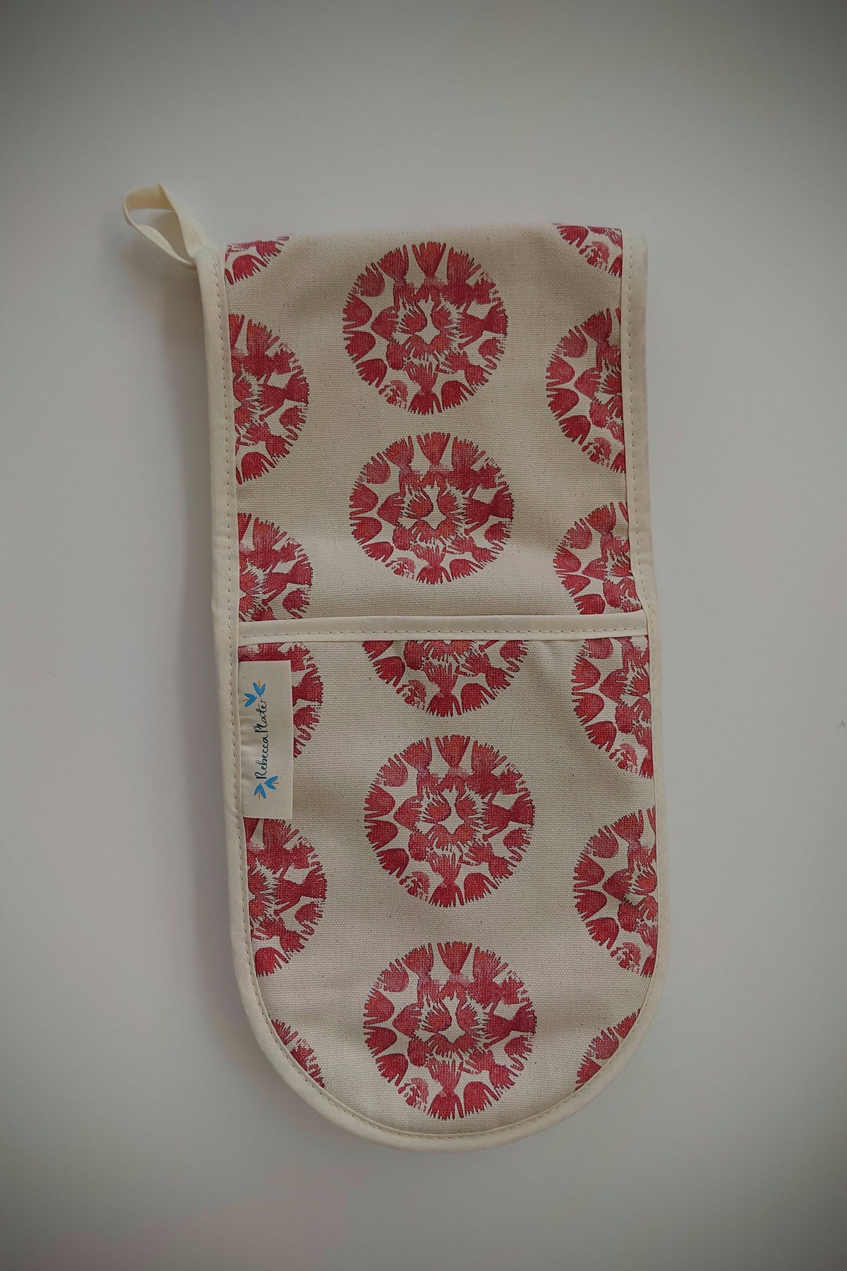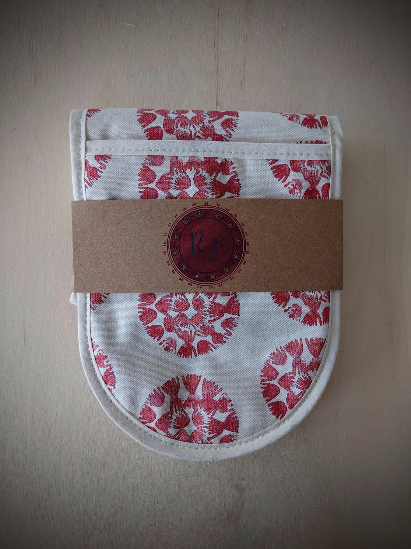 Each oven glove may differ slightly due to the handmade quality. The placement of the print will be individual to every product to maintain its unique quality.