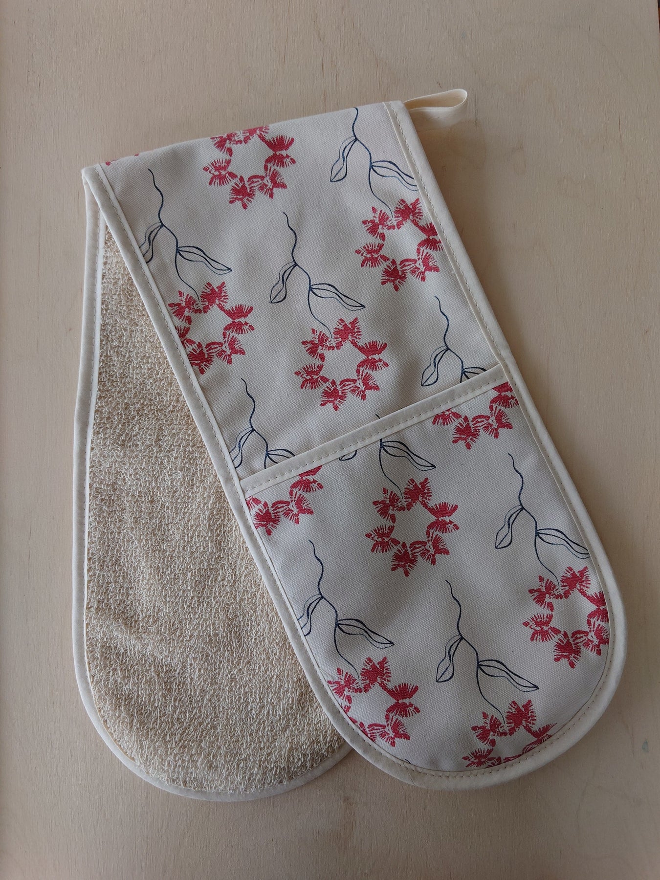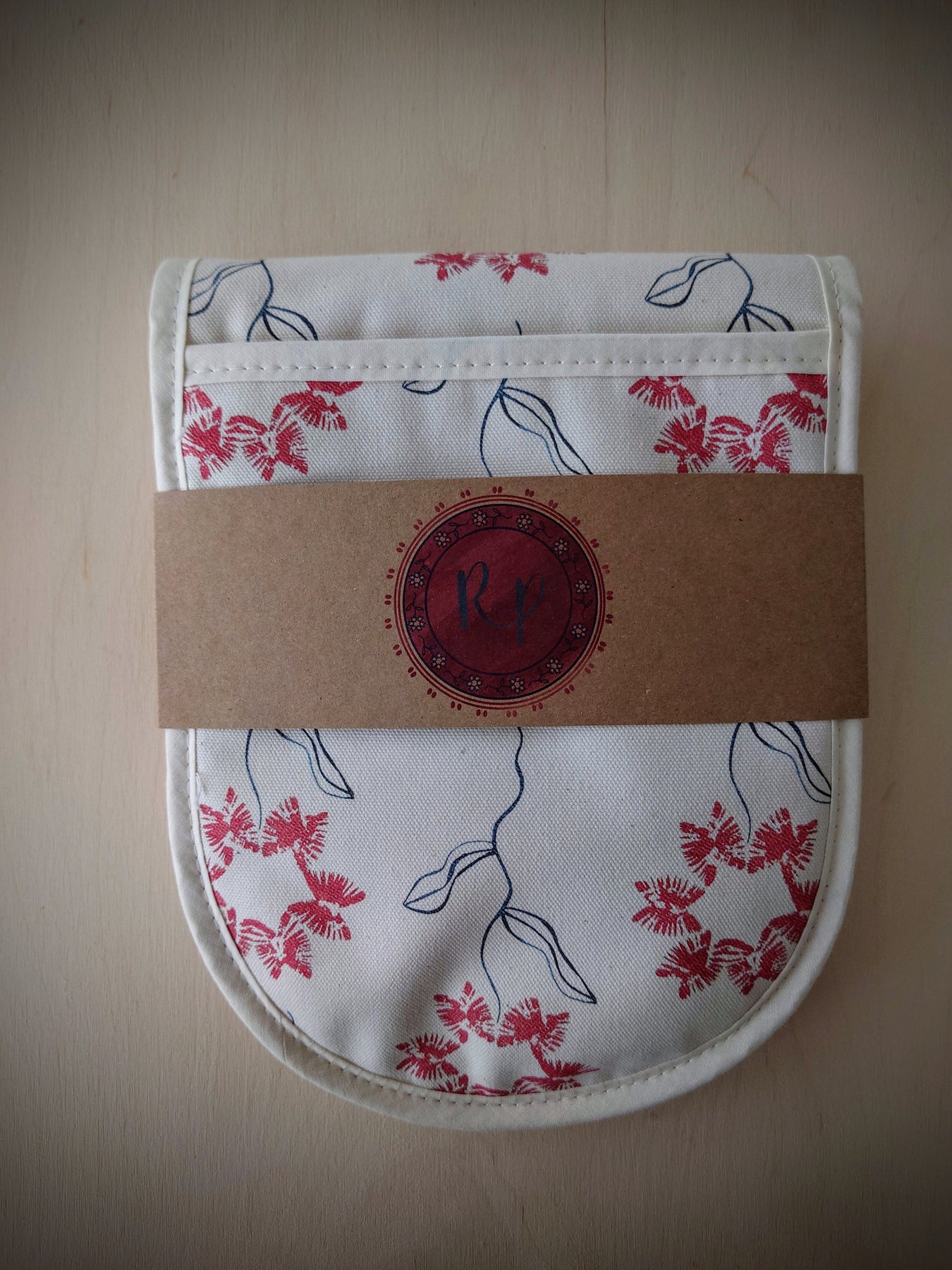 Each oven glove may differ slightly due to the handmade quality. The placement of the print will be individual to every product to maintain its unique quality.