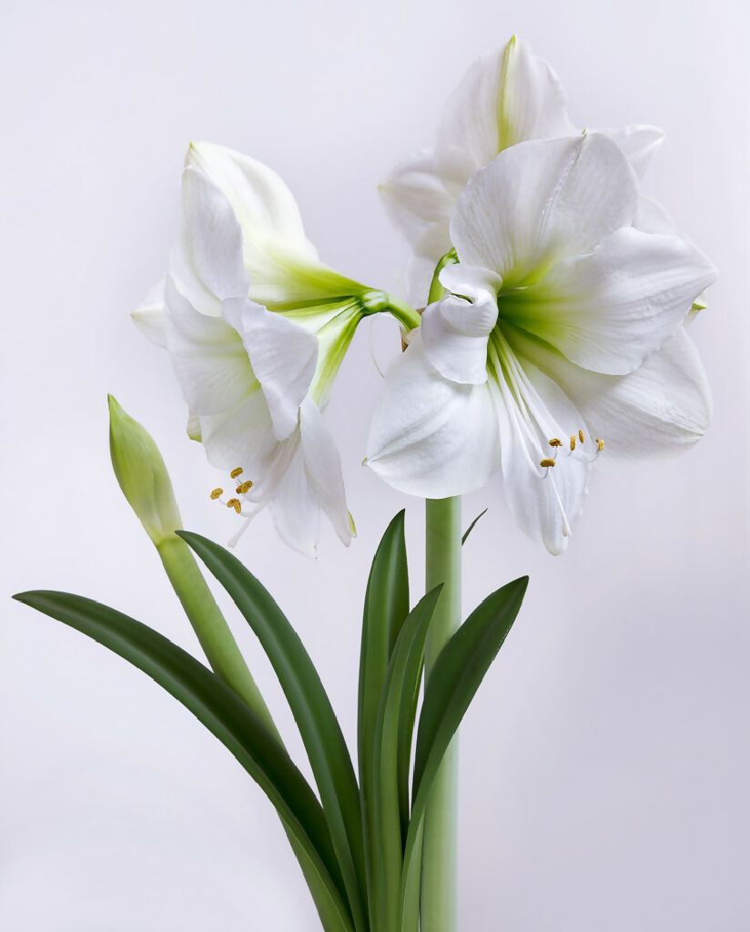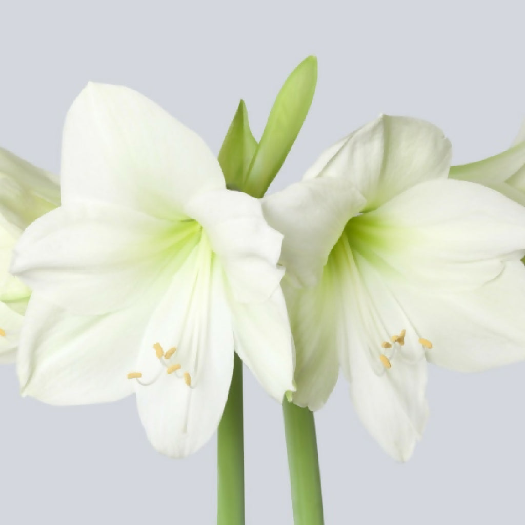 Amaryllis ‘White Christmas’ produces large, pure white trumpet-shaped blooms that bring elegance and festive charm indoors - the perfect winter centrepiece or seasonal gift.