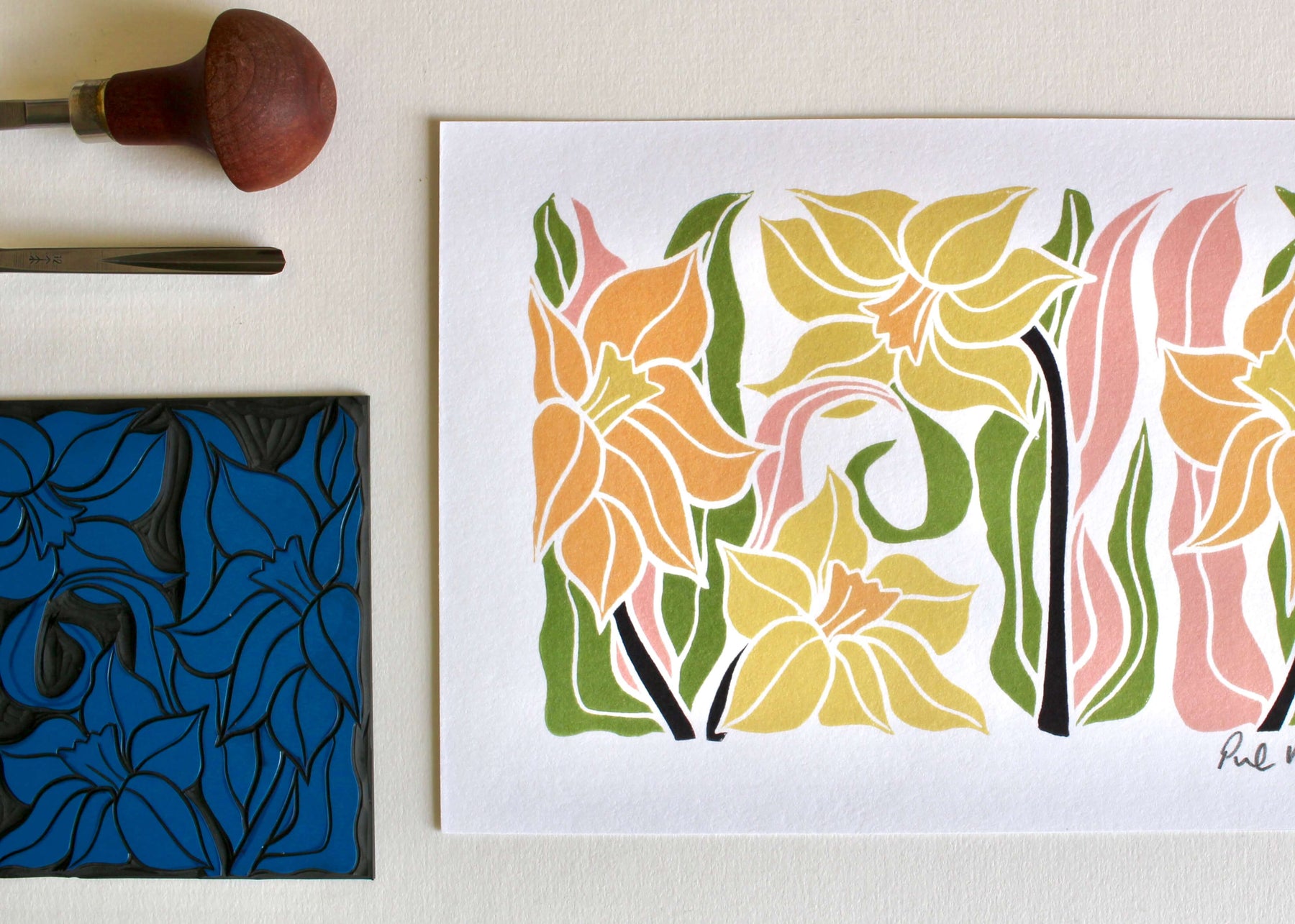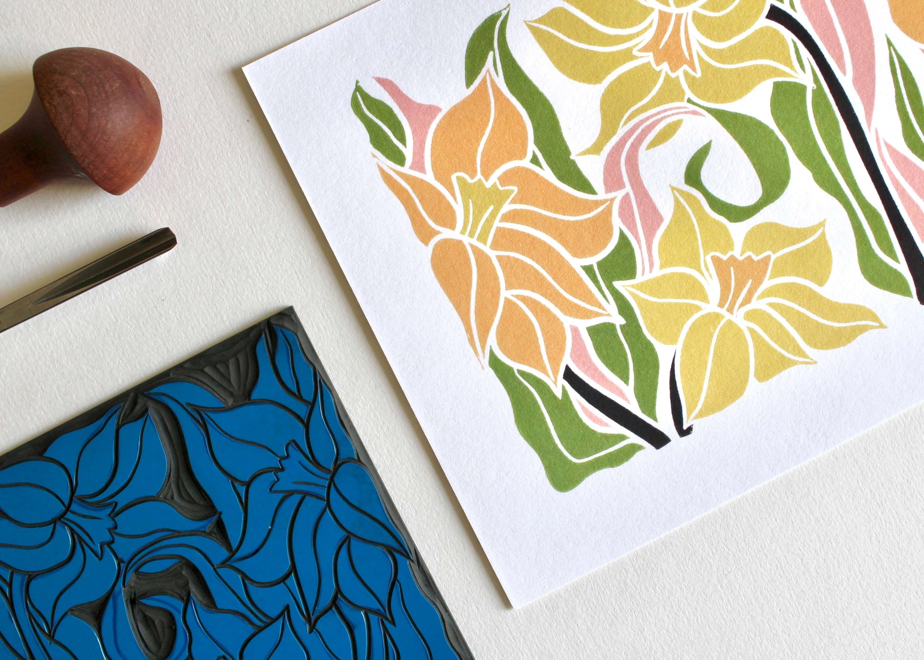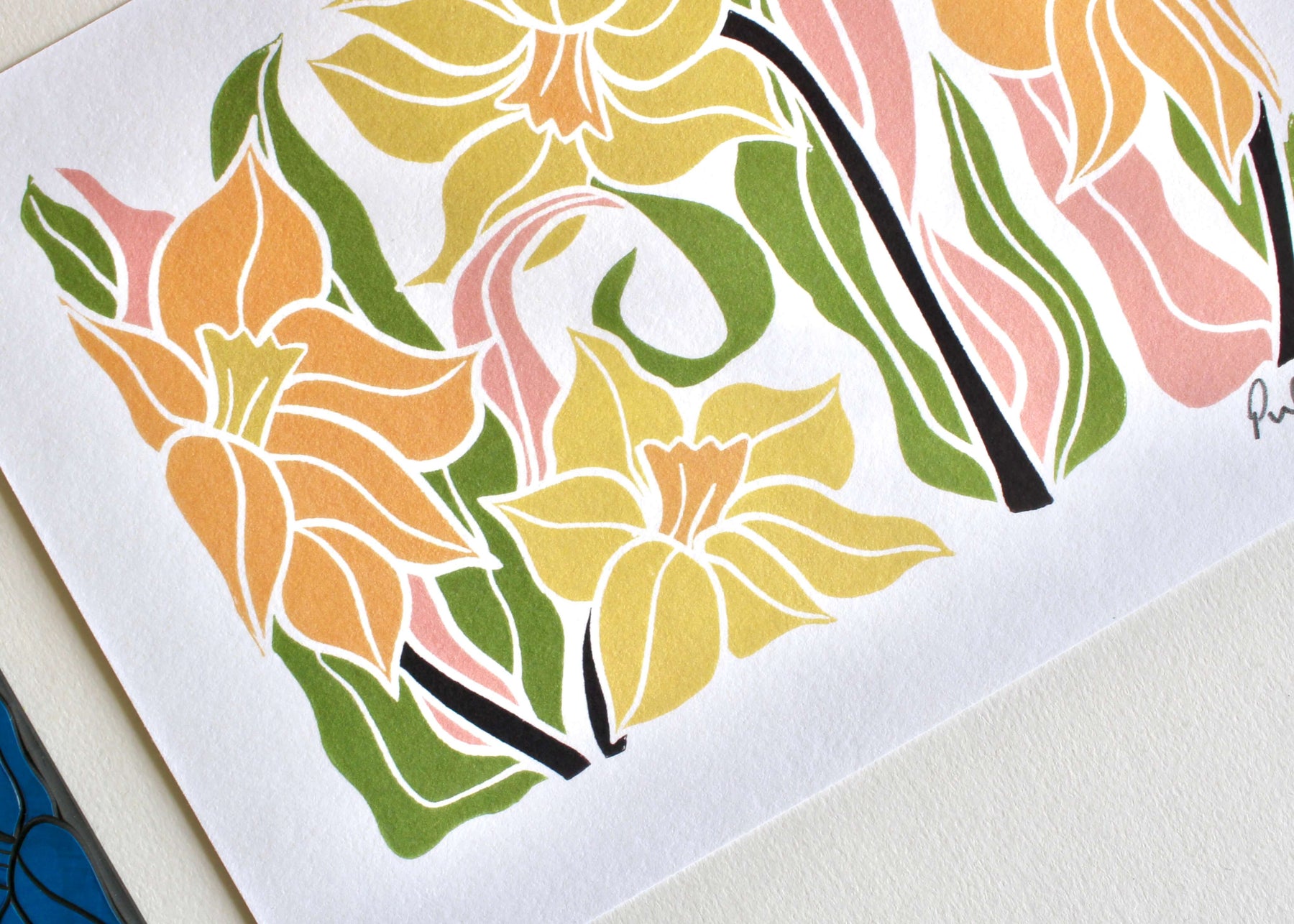 Our art prints features a modern linocut design, which was originally created using traditional relief printmaking techniques. It is printed digitally in-house on to superior quality, 300gsm, acid-free, cotton paper.