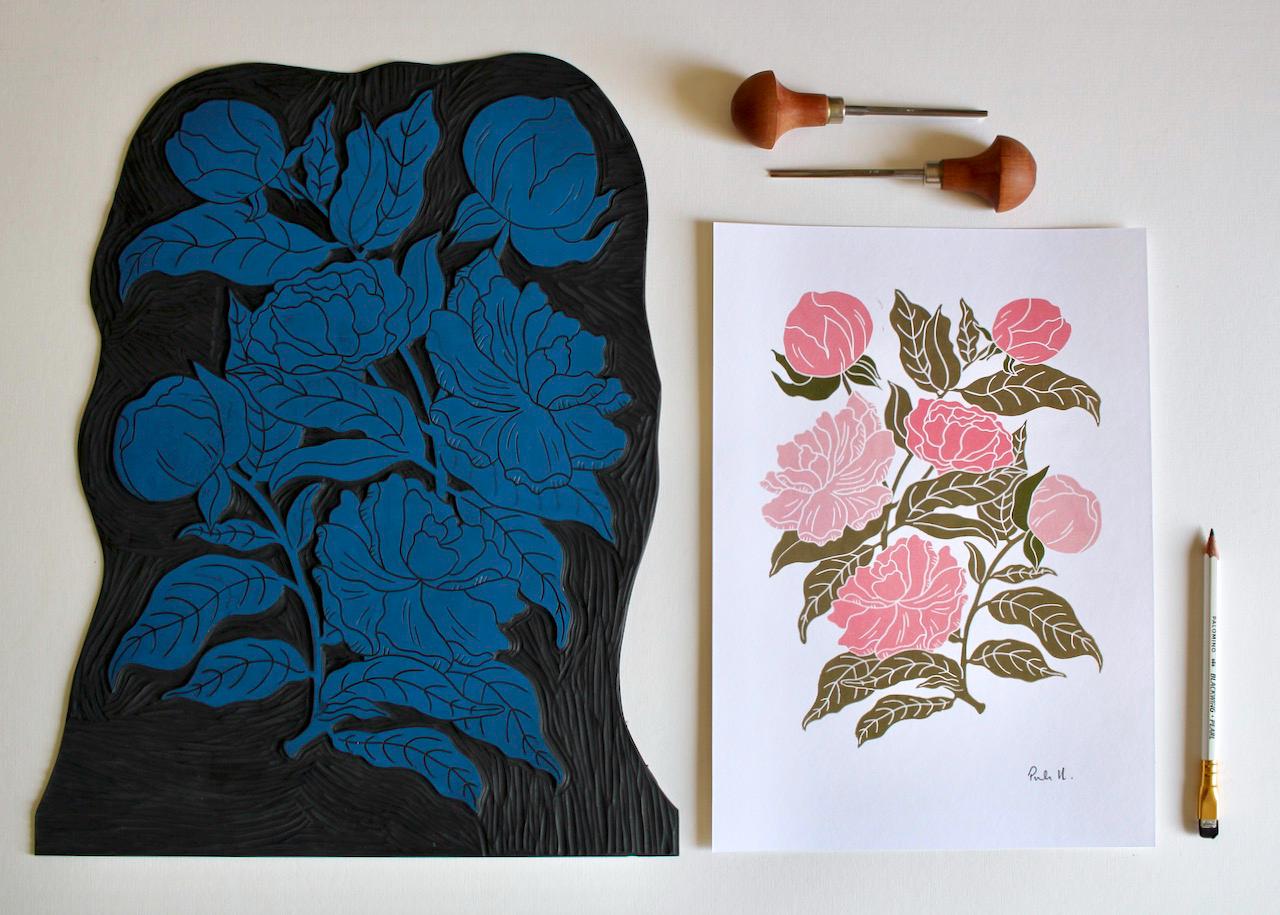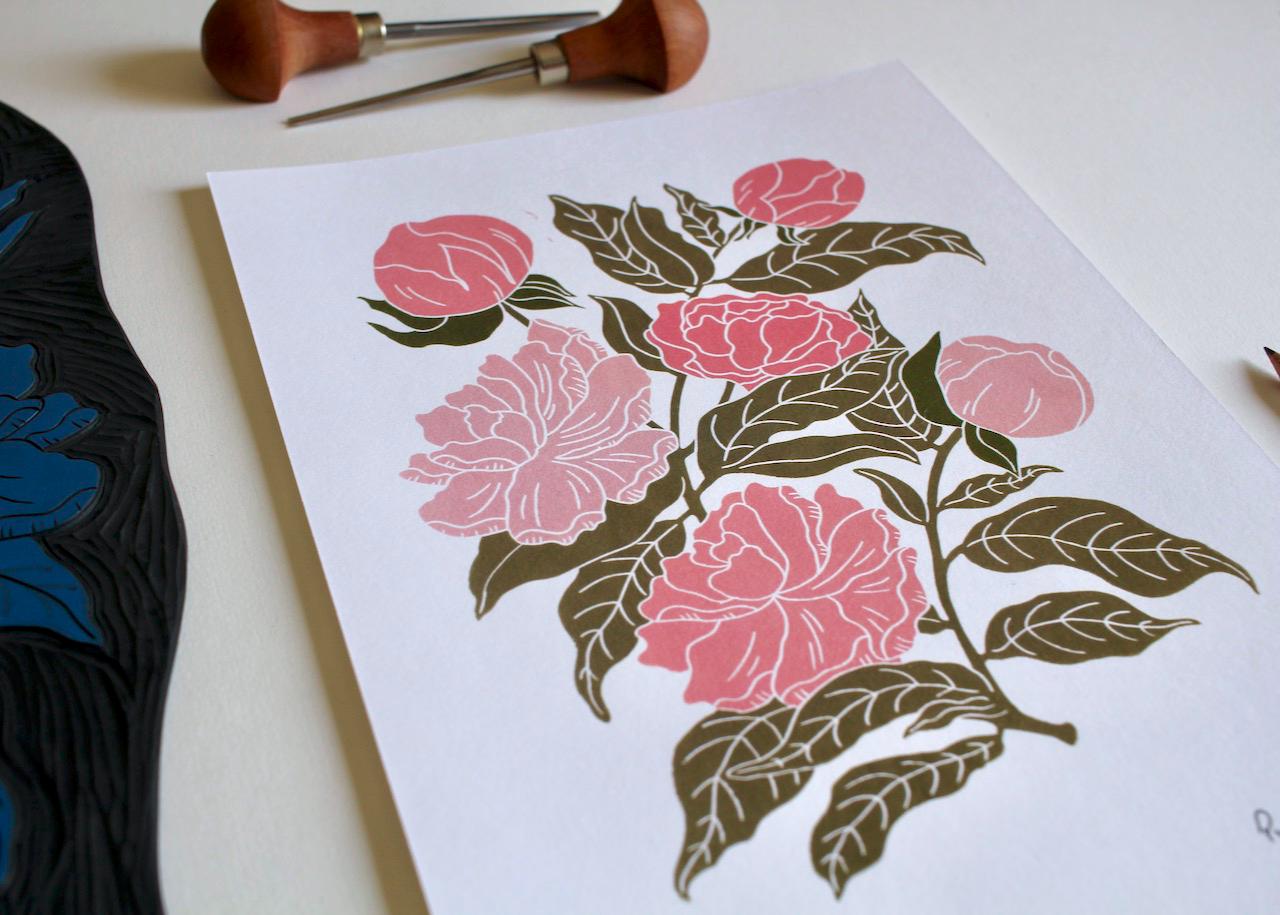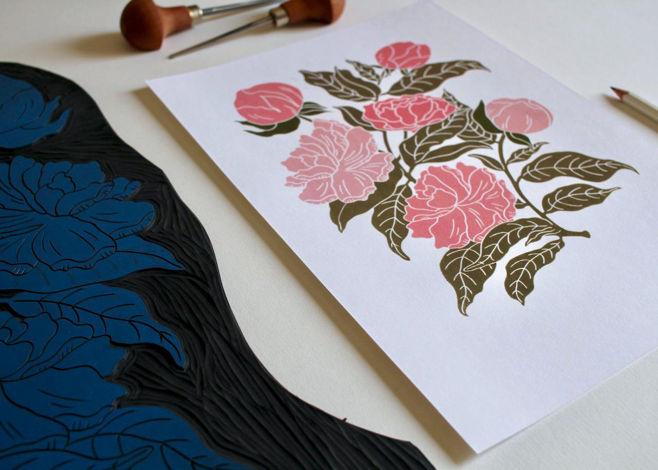 Is there any flower more beautiful than the Peony? Filed with big, beautiful blooms, the peony flower is a symbol of love, honour, happiness and wealth. Peonies are traditionally gifted to express love, best wishes and joy. With a short flowering season, you can enjoy peonies all year round with this linocut art print. Originally created using traditional relief printmaking techniques and carefully printed digitally on to tactile 300gsm cotton paper.