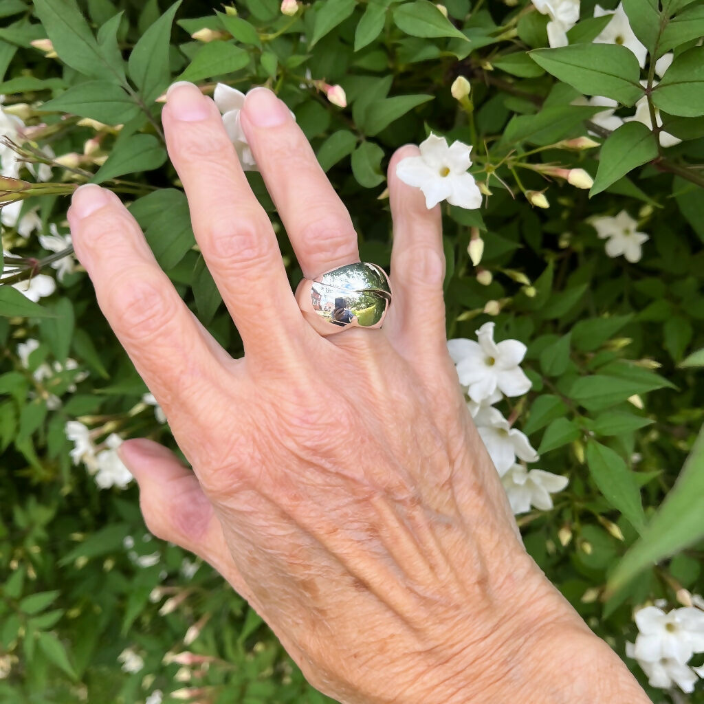 This silver super chunky ring looks contemporary and stylish, and is a one-off.