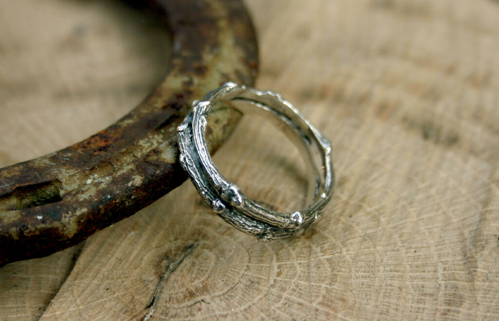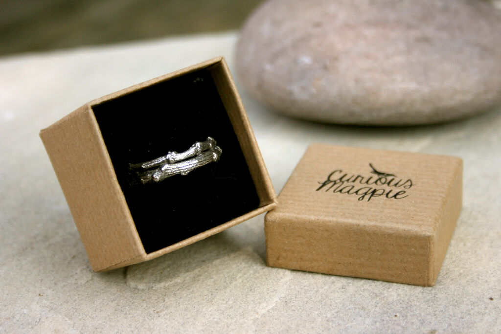 This striking sterling silver twig ring is handcrafted in our UK studio and makes a distinctive gift for birthdays, anniversaries, or as an alternative wedding or commitment ring.