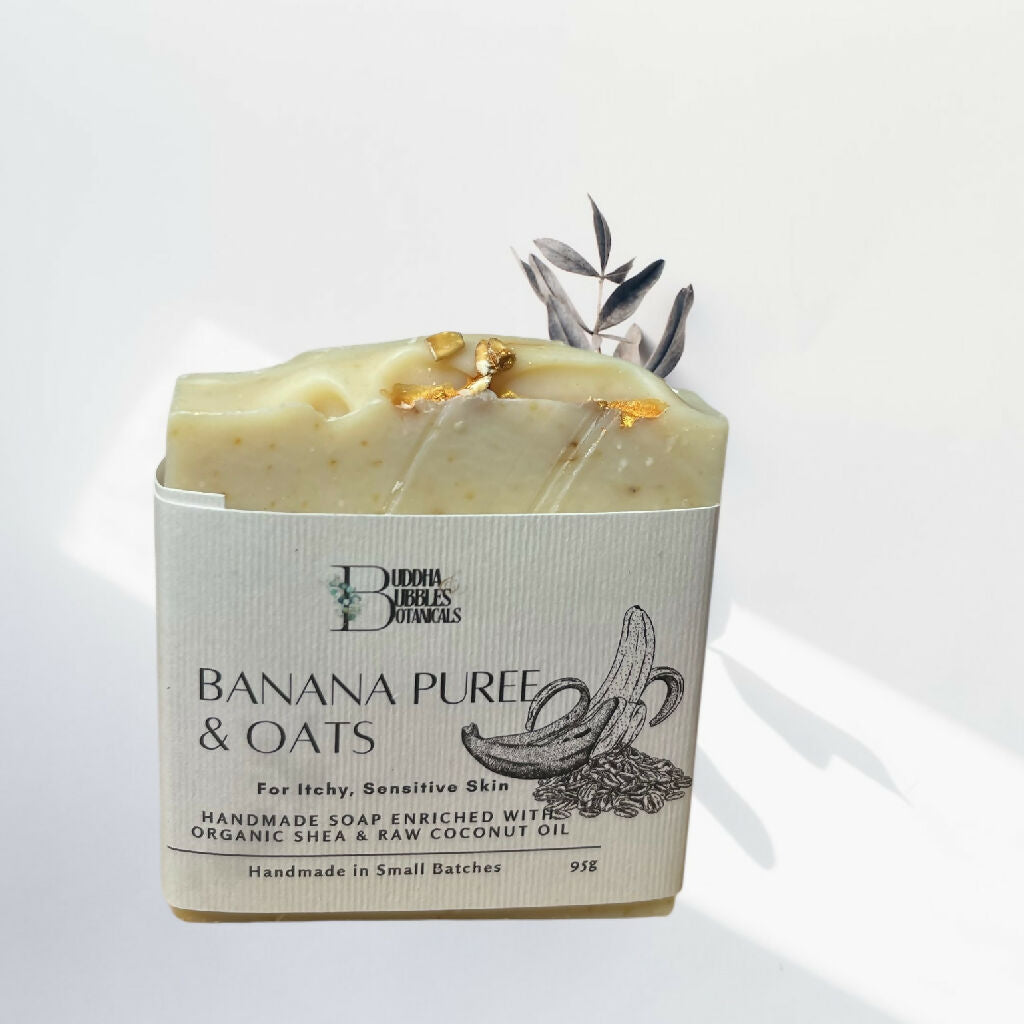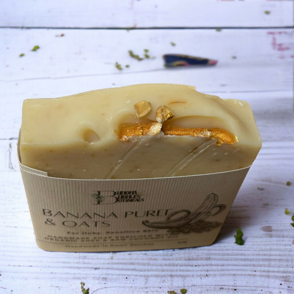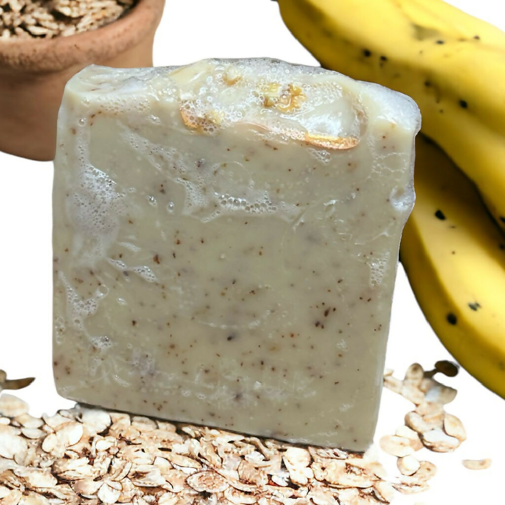 Experience the purest form of cleansing with our handmade unfragranced Banana Puree Soap. Crafted using the traditional cold process method, this exceptionally gentle bar is enriched with luxurious Organic Shea and Coconut Oil for deep conditioning. Fine Oatsare blended throughout to provide the softest exfoliation, leaving your skin calm and balanced. Suitable for facial use.