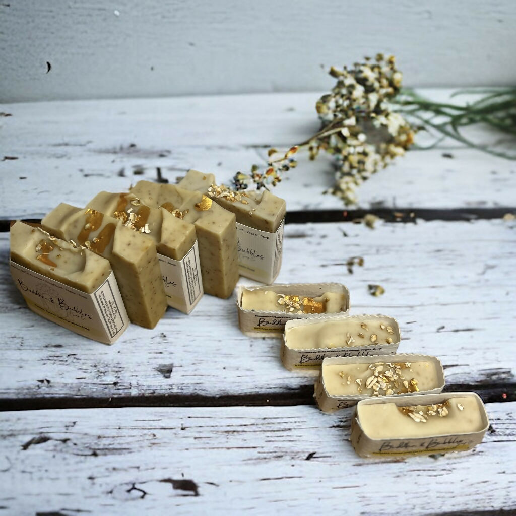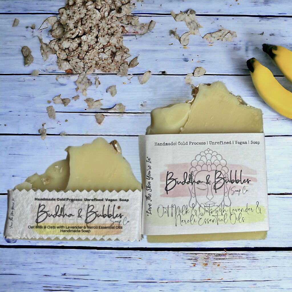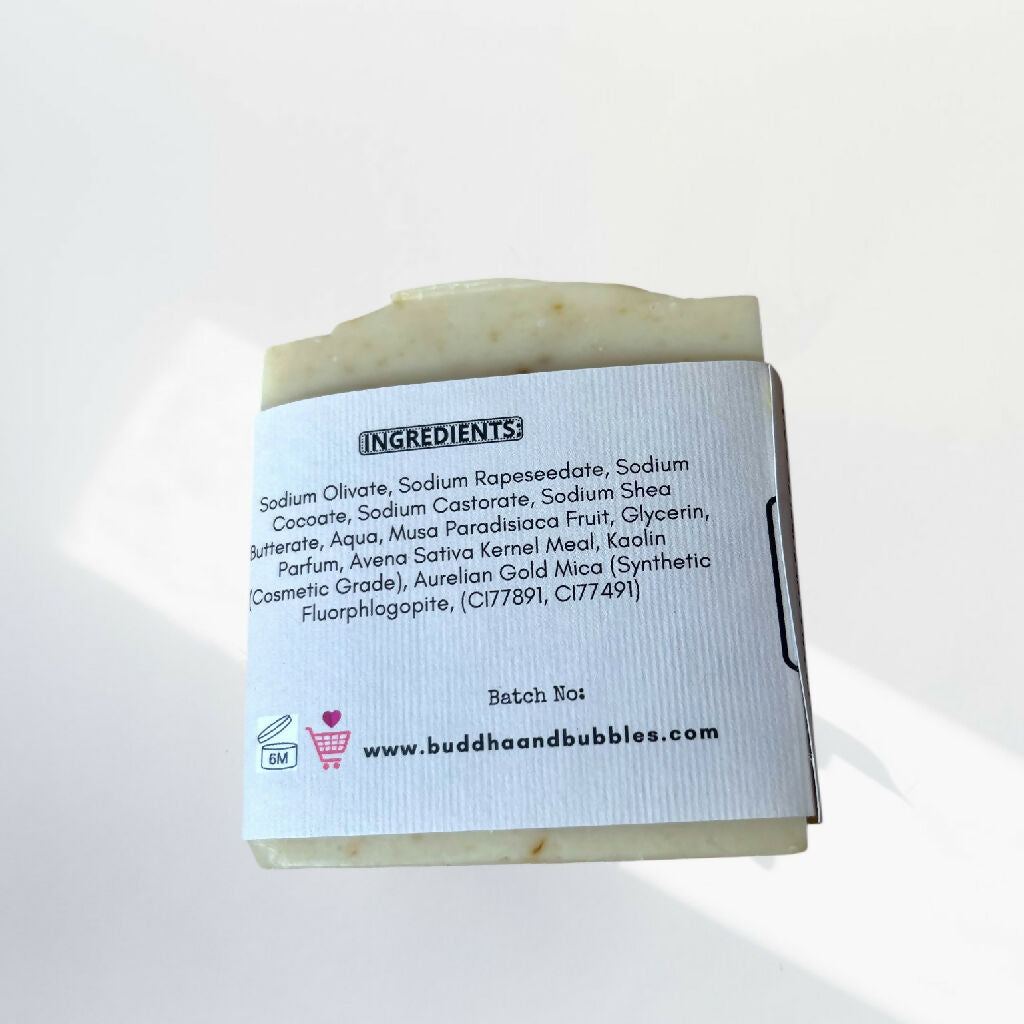 Experience the purest form of cleansing with our handmade unfragranced Banana Puree Soap. Crafted using the traditional cold process method, this exceptionally gentle bar is enriched with luxurious Organic Shea and Coconut Oil for deep conditioning. Fine Oatsare blended throughout to provide the softest exfoliation, leaving your skin calm and balanced. Suitable for facial use.