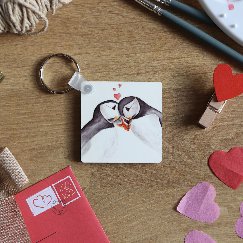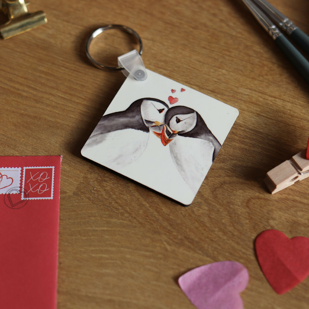 Puffins keyring finished in a high gloss finish mdf and printed on both sides.